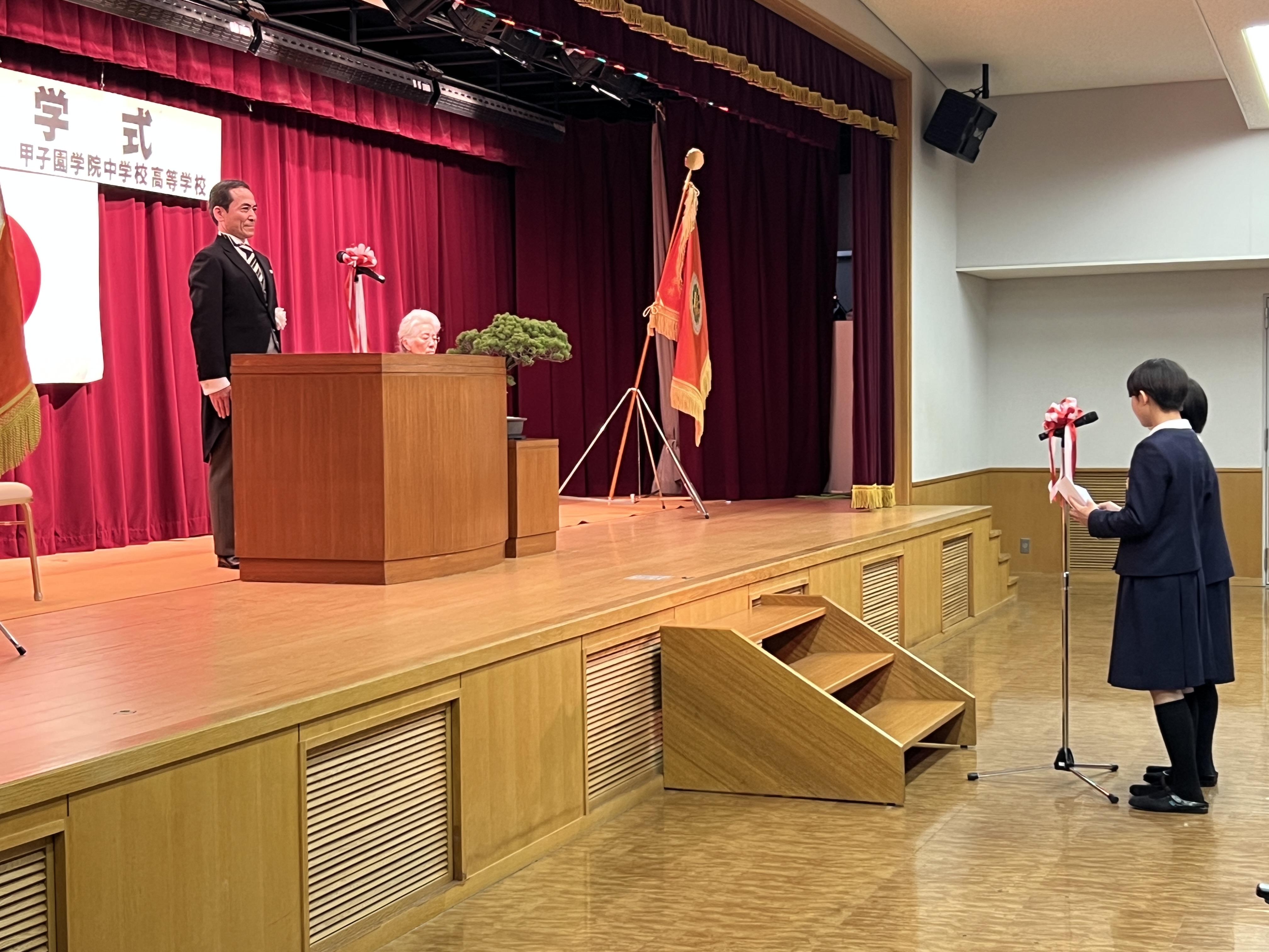 式では、川崎校長より新入生に向けて温かい激励の言葉が贈られました。また、中学・高校ともに3年生が参加し、新入生を迎える場としてふさわしい雰囲気の中で式が進行しました。