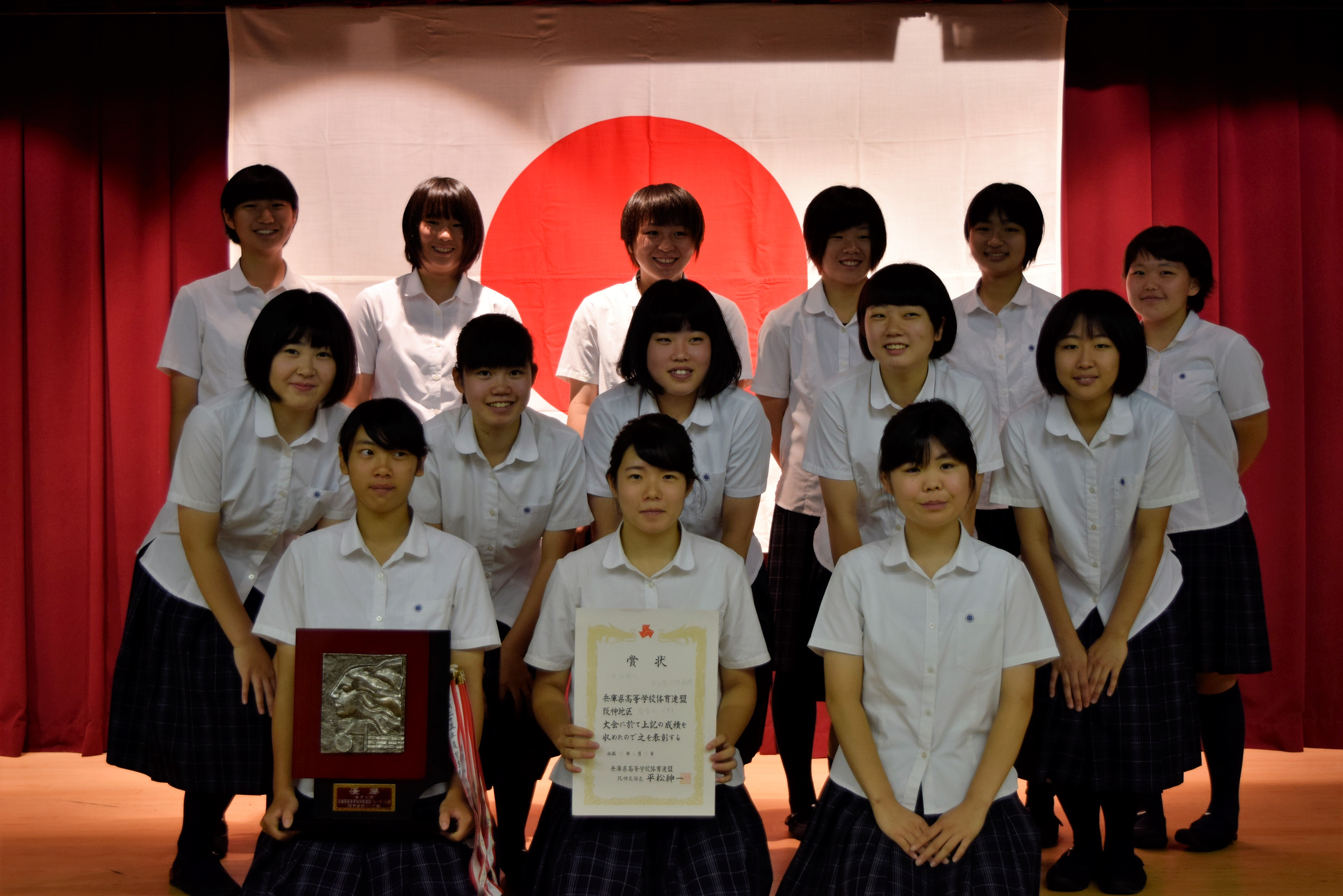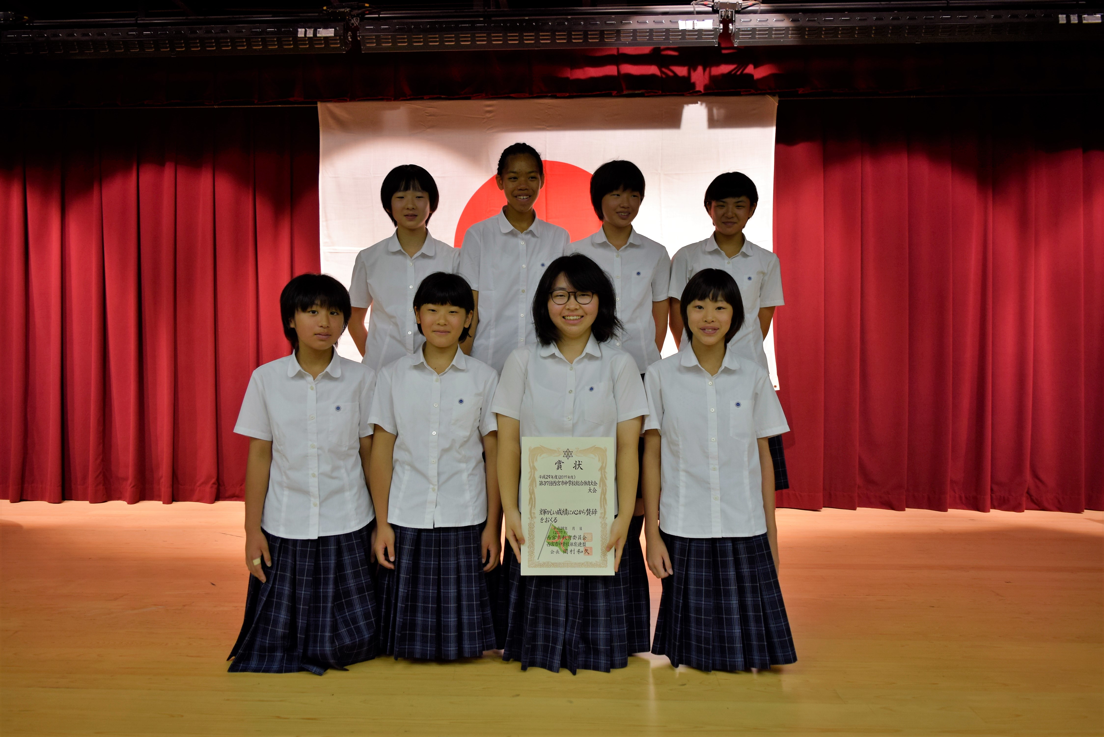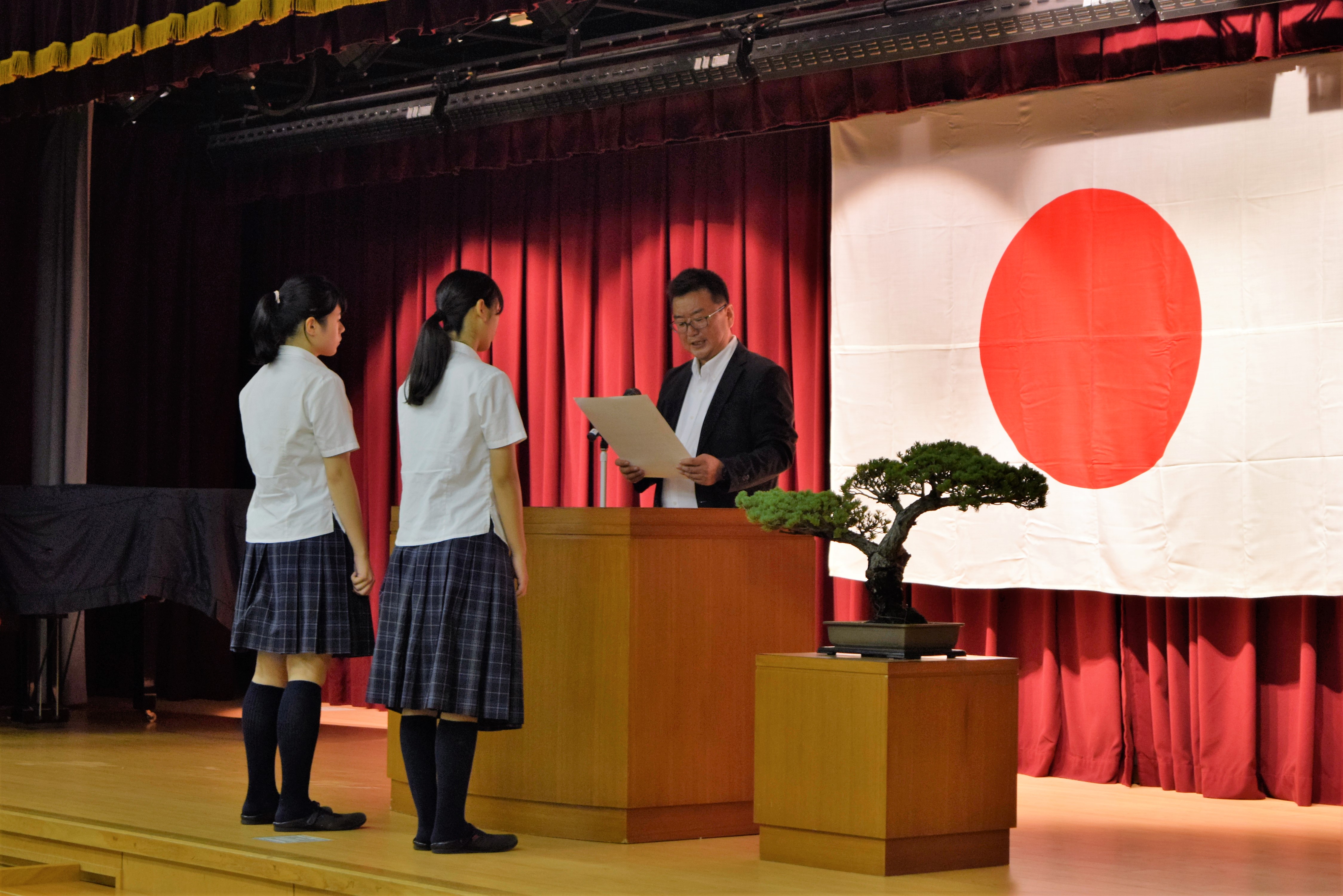 また、先日行われた大会で活躍した中学校バレーボール部、高等学校バレーボール部の表彰が行われ、校長先生より賞状が授与されました。