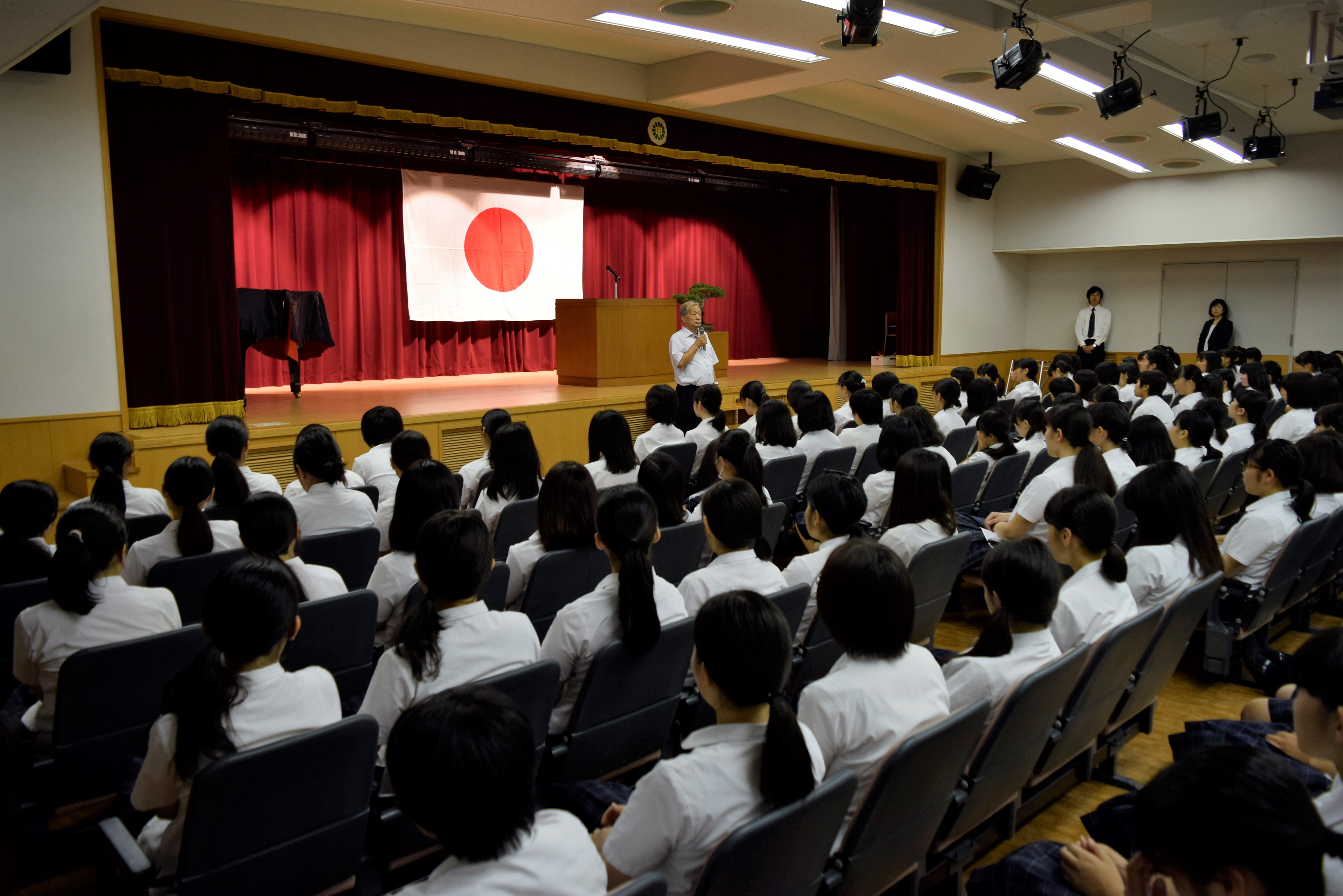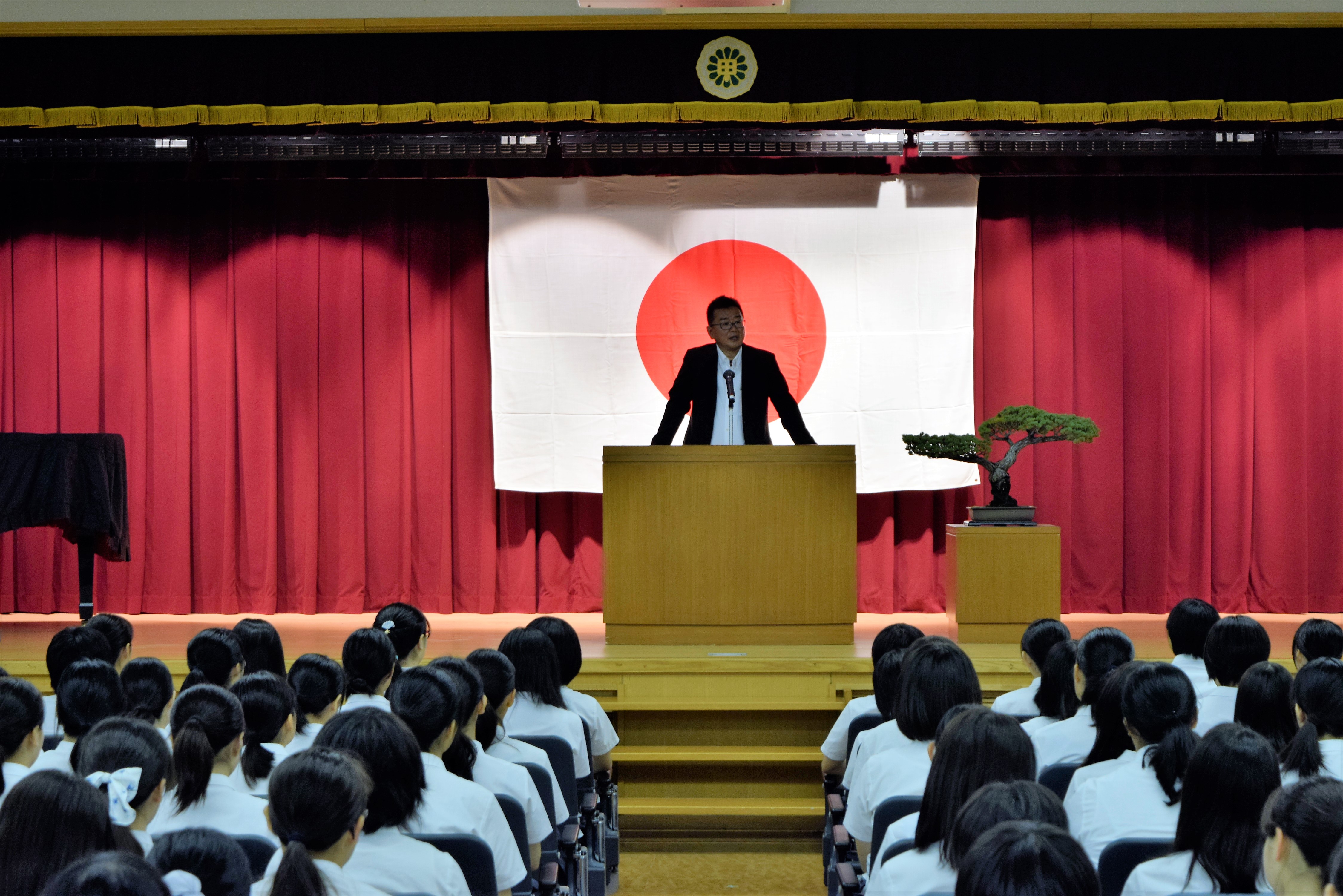 宮島校長先生から、今学期の総括と2学期にむけてのお話がありました。また、吹奏楽部の演奏で、君が代および学院歌をしっかりと歌い、1学期を締めくくることができました。高校3年生にとっては進路決定の大切な時期です。将来のため、悔いのないように過ごしてほしいと思います。