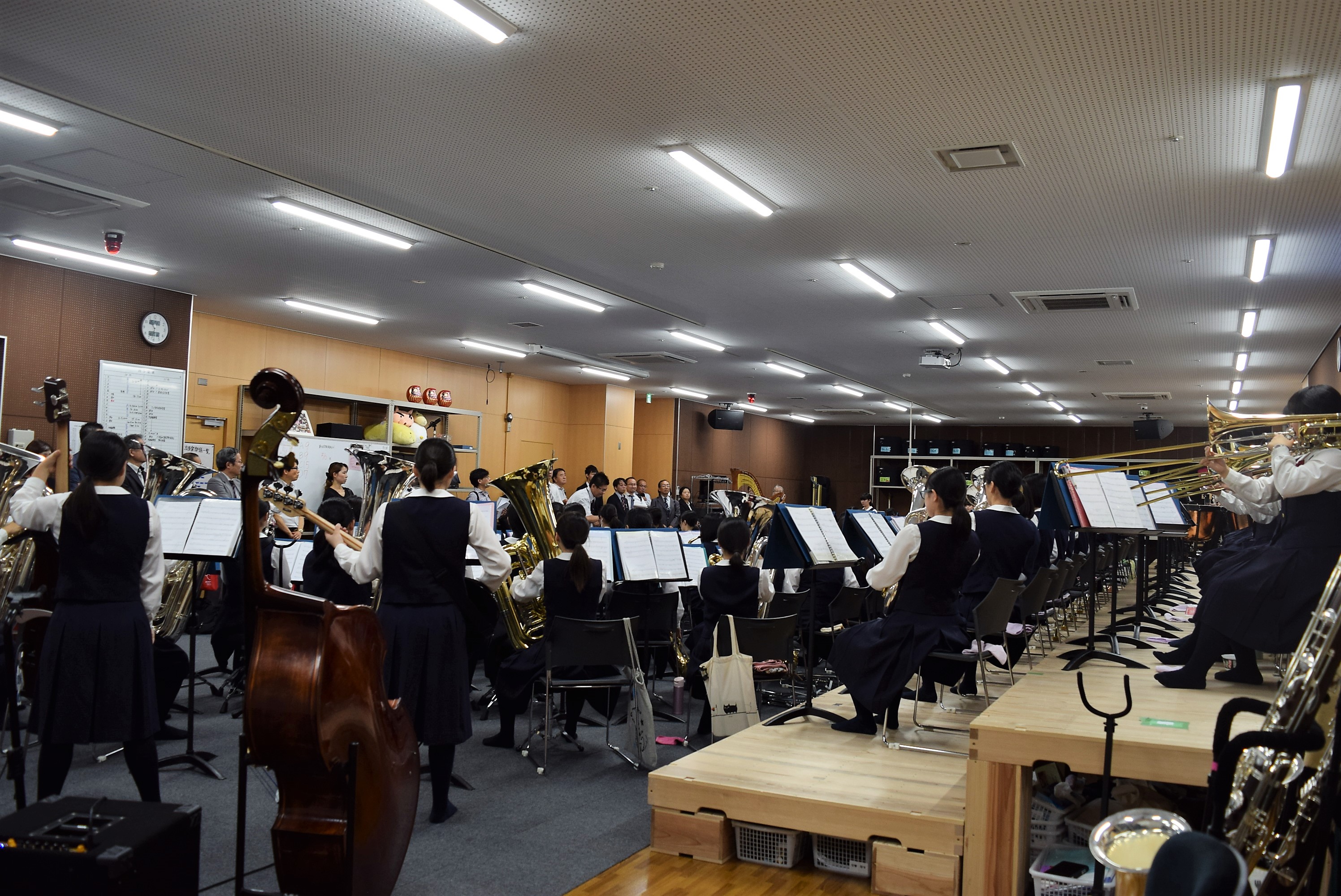 今年度は公開授業ならびに公開部活動(吹奏楽)の見学を実施した後、講堂にて全体説明会を行い、中学校での
