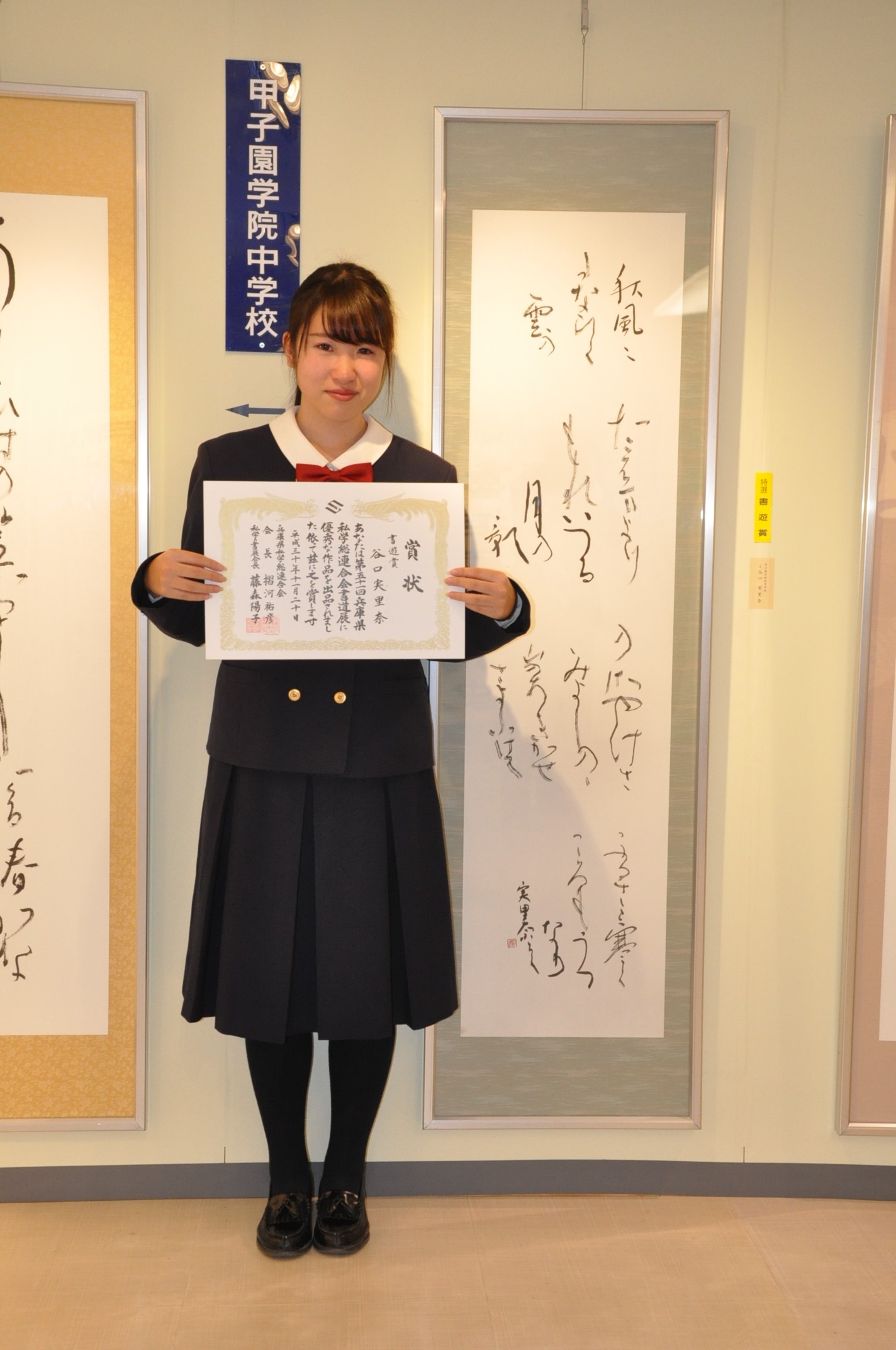 において、高等学校2年生の谷口 実里奈さんの作品が特別賞(書遊賞)を受賞しました。
