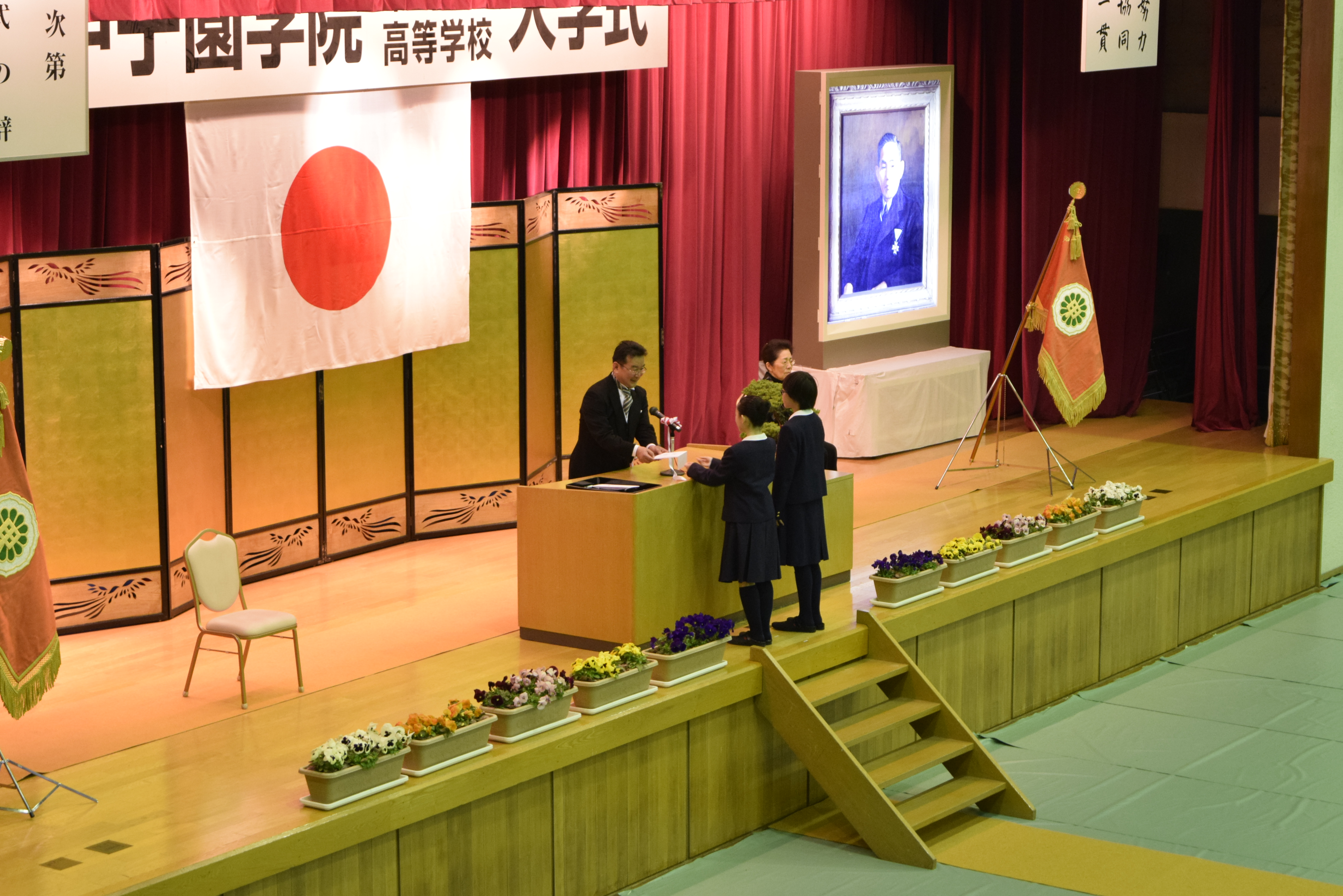真新しい制服に身を包んだ新入生は、期待と不安を胸に式に臨み、式場には新入生と保護者の方々に加えて、在校生が参列して入学を祝いました。