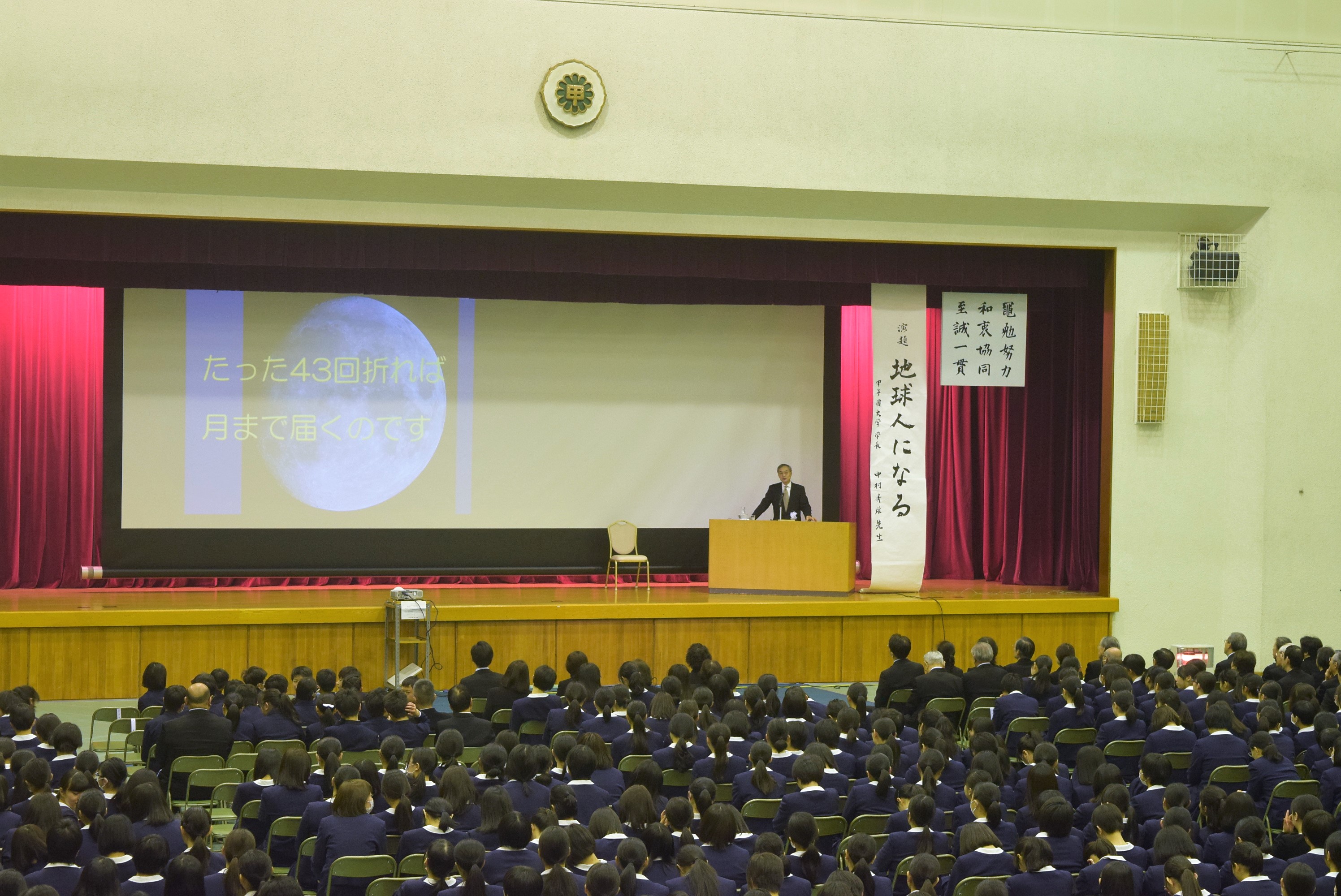 式後、「地球人になる」という演題で、甲子園大学学長の中村秀雄先生による記念講演を拝聴しました。