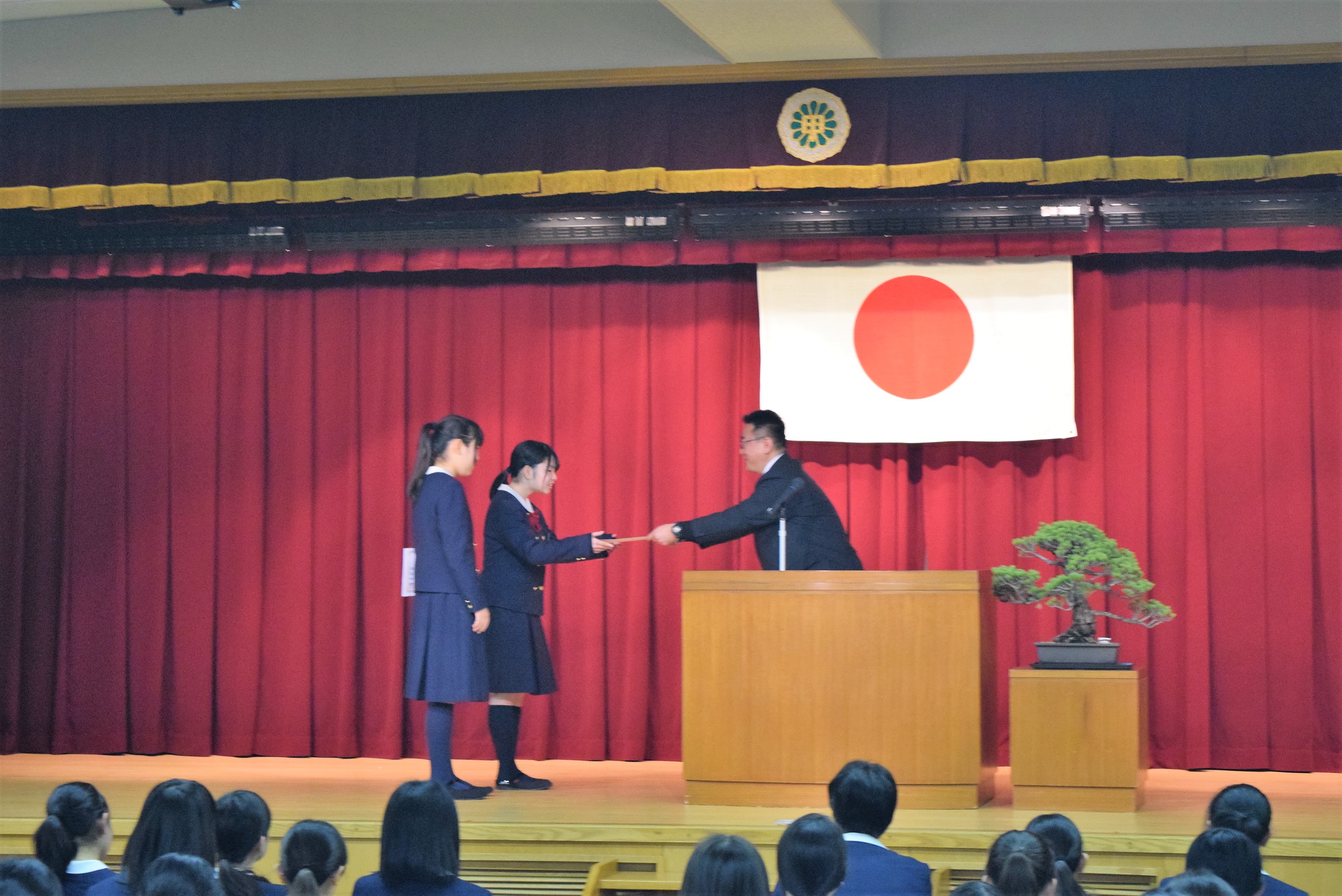 宮島校長先生から、新年度の挨拶、部活動(卓球部)の表彰、今年度より着任された5名の先生方の紹介などが