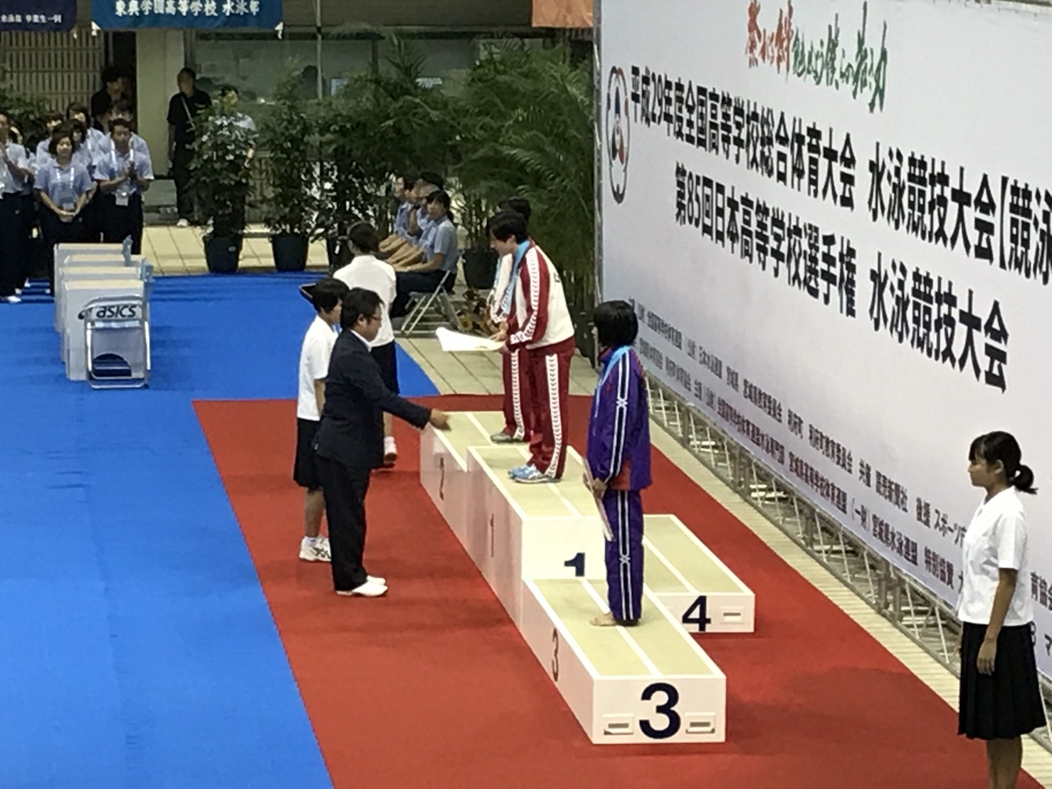 8月17日(木)〜8月20日(日)の期間、セントラルスポーツ宮城にて行われている、平成29年度 全国高等学校総合体育大会水泳競技大会 第85回 日本高等学校選手権水泳競技大会において、本校高等学校 第3学年 板橋 美波さん、第2学年 荒井 祭里さんが素晴らしい成績を残してくれました。結果は以下の通りです。