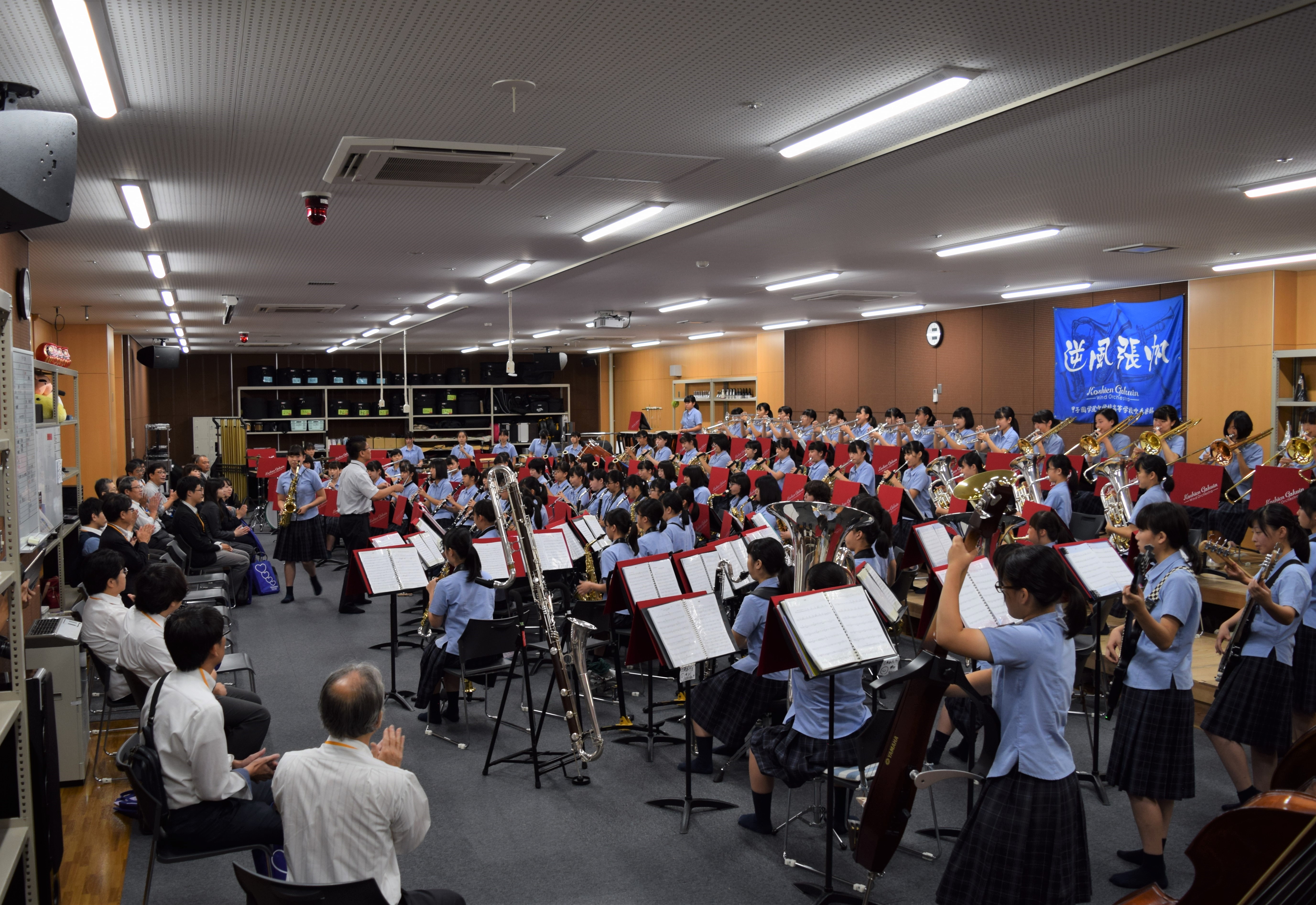 初めに、公開授業ならびに公開部活動(吹奏楽)の見学を実施した後、講堂にて全体説明会を行い、中学校での