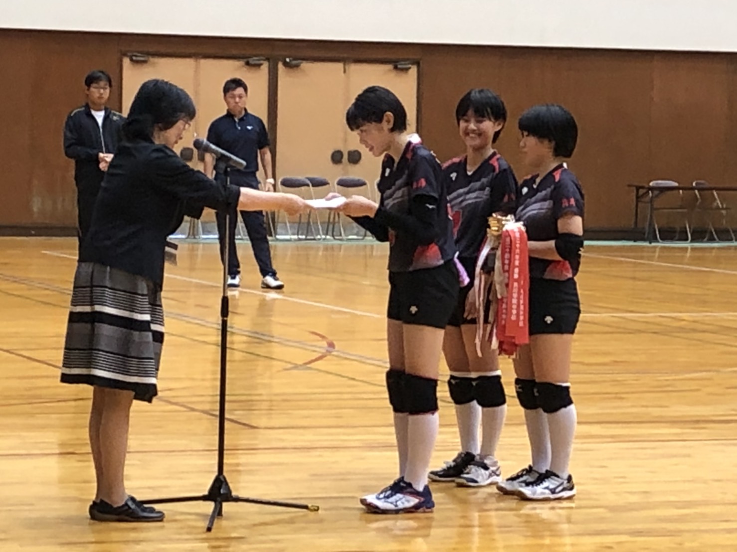 競技大会)女子の部の決勝トーナメントが行われ、本校中学校バレーボール部が見事優勝しました。