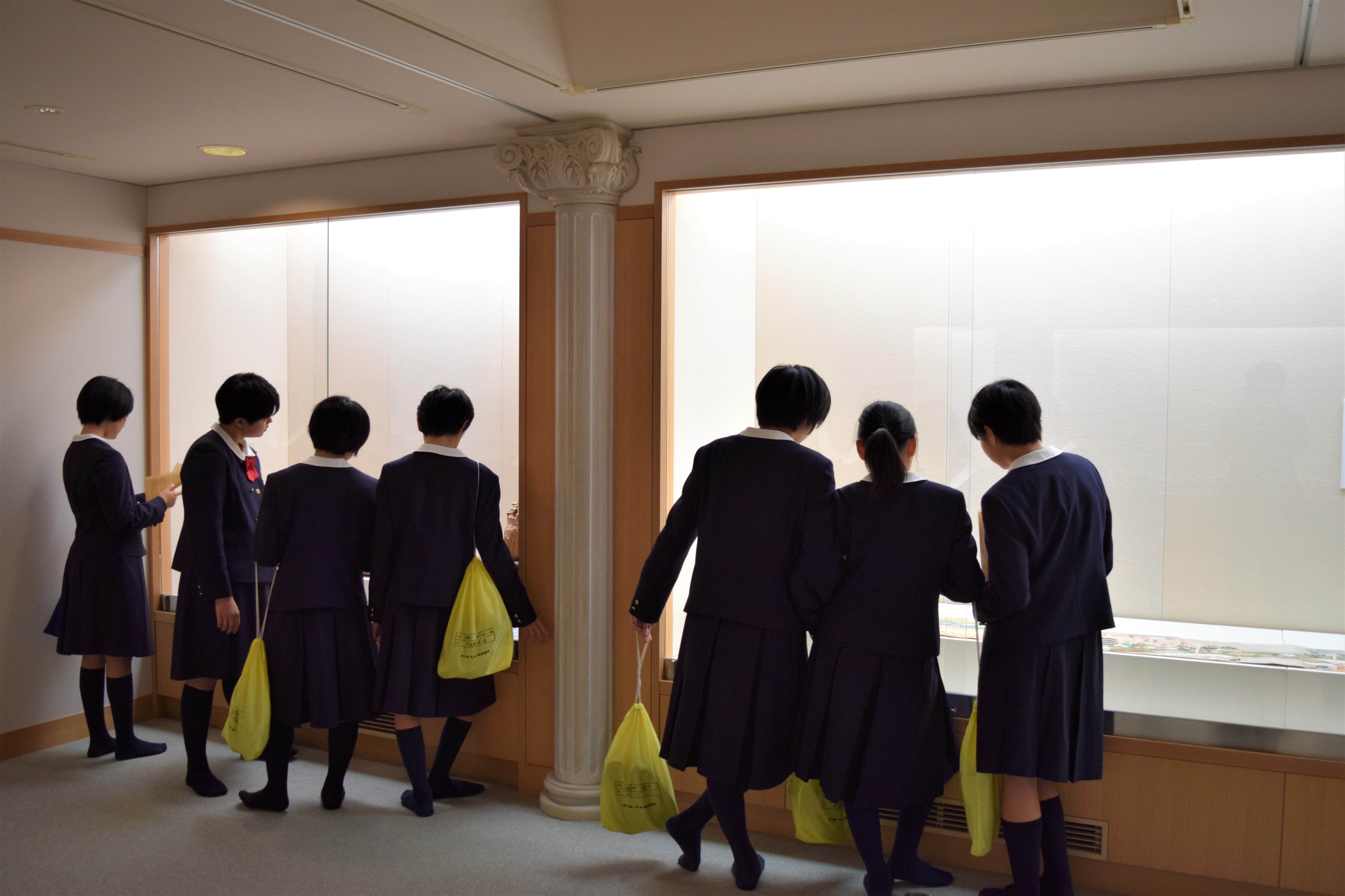 生徒たちはそれぞれ気になる作品を見つけては、足を止めて一つ一つの作品に見入っていました。