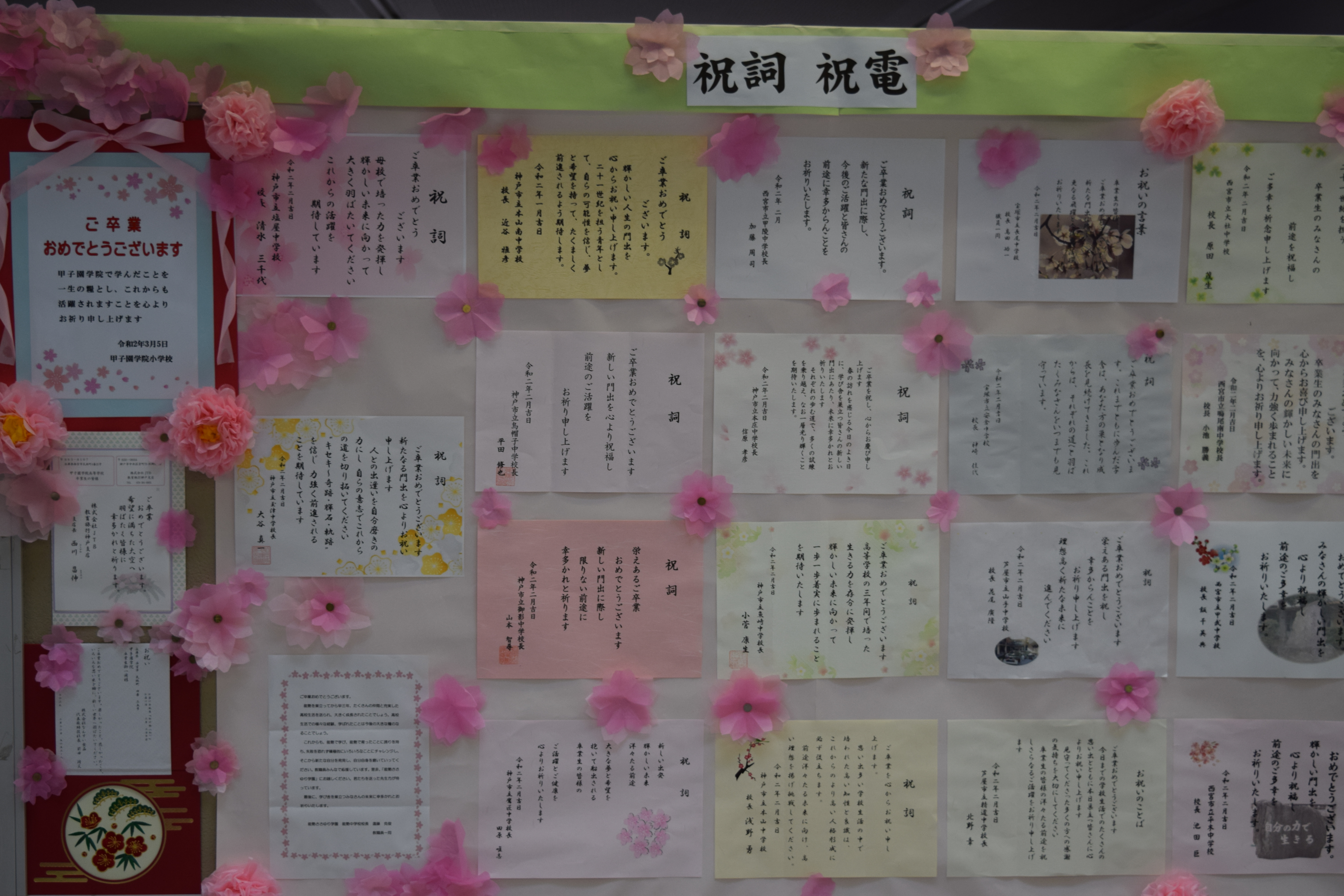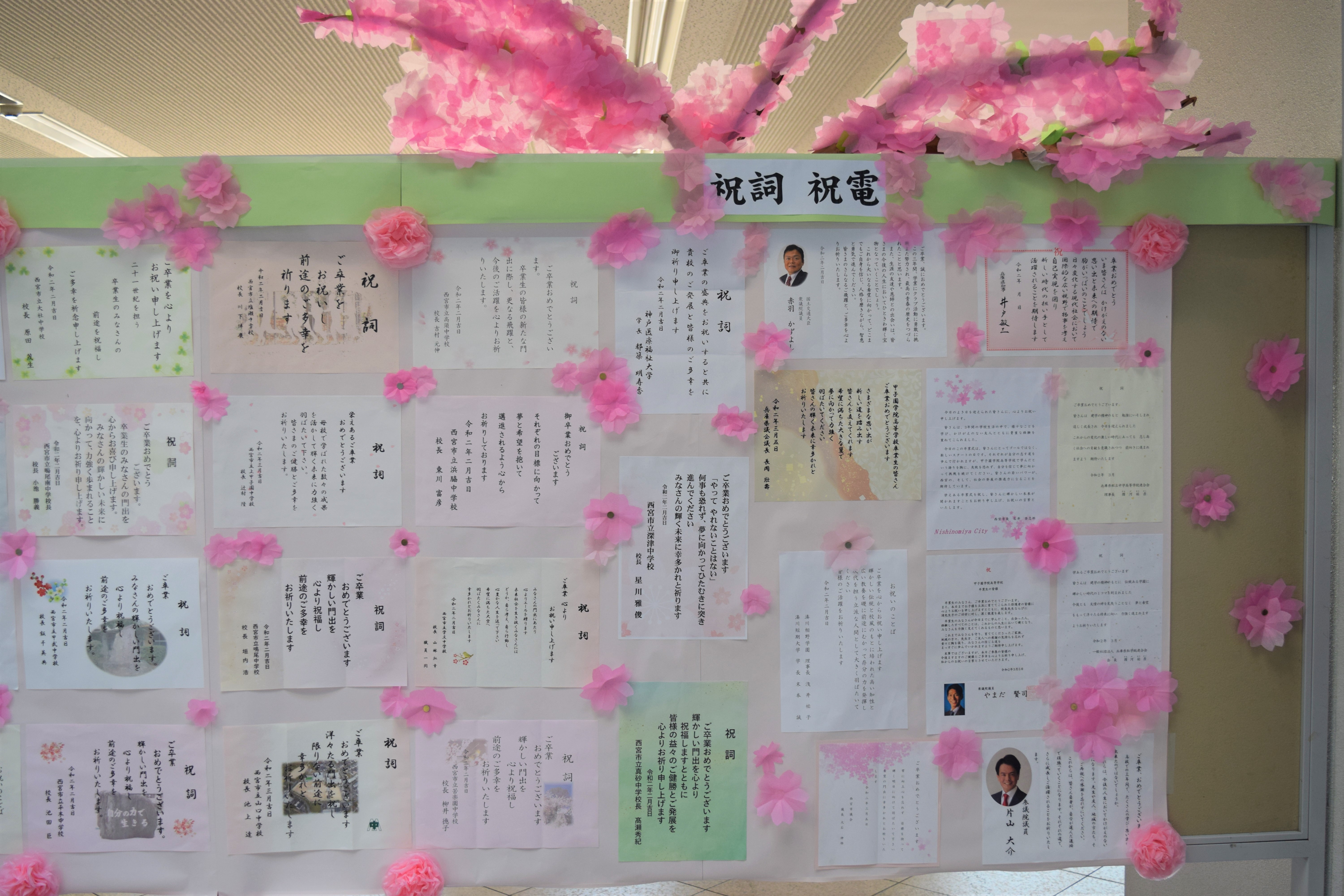 出身中学校から卒業するみなさんへのお祝いメッセージもたくさん届いています。