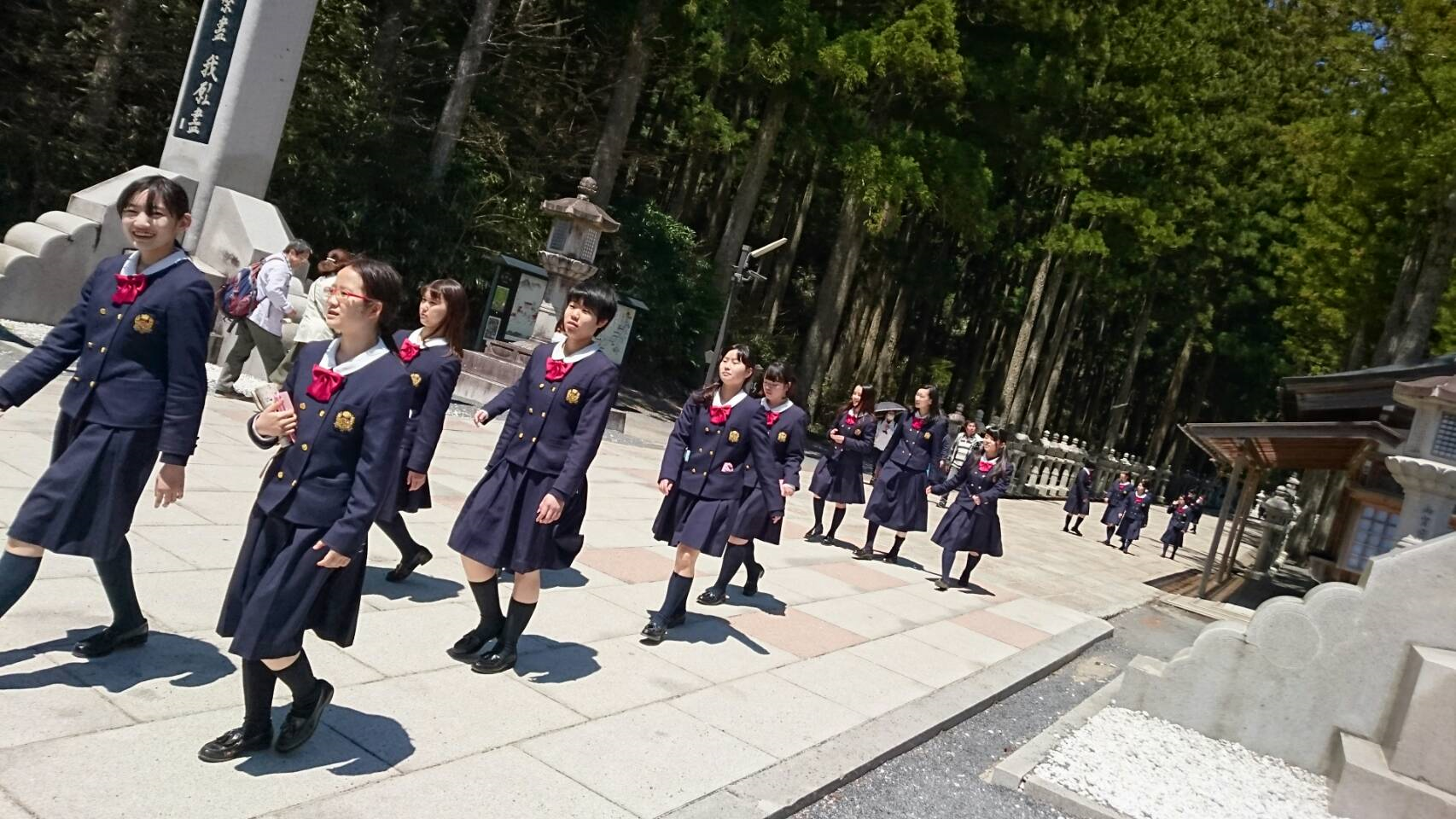 午前8時に集合し、貸切バスで高野山へ向かいました。 慰霊塔での参拝は、学院関係者の遺徳を偲び、高校3年生として進路決定への思いを新たにしました。