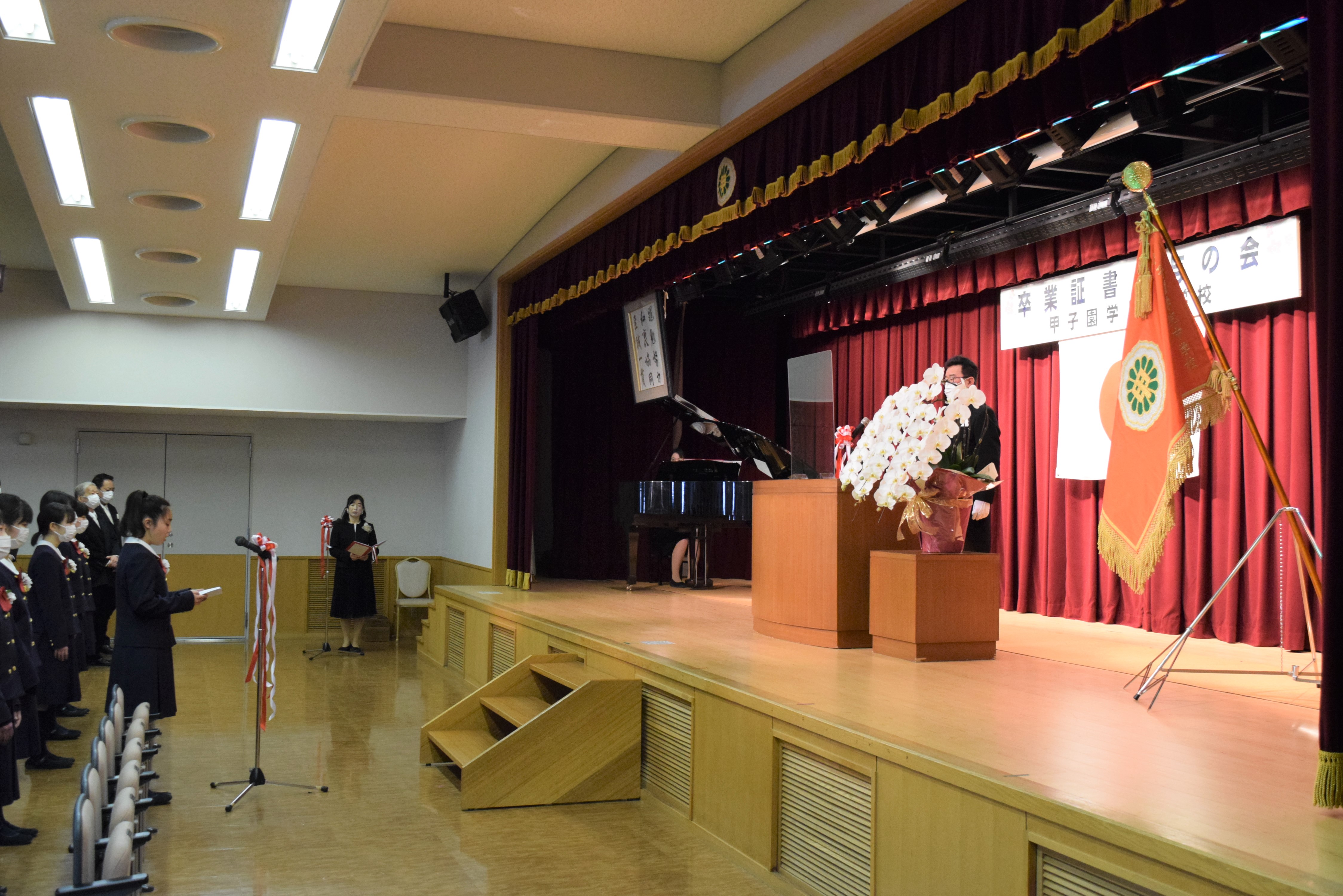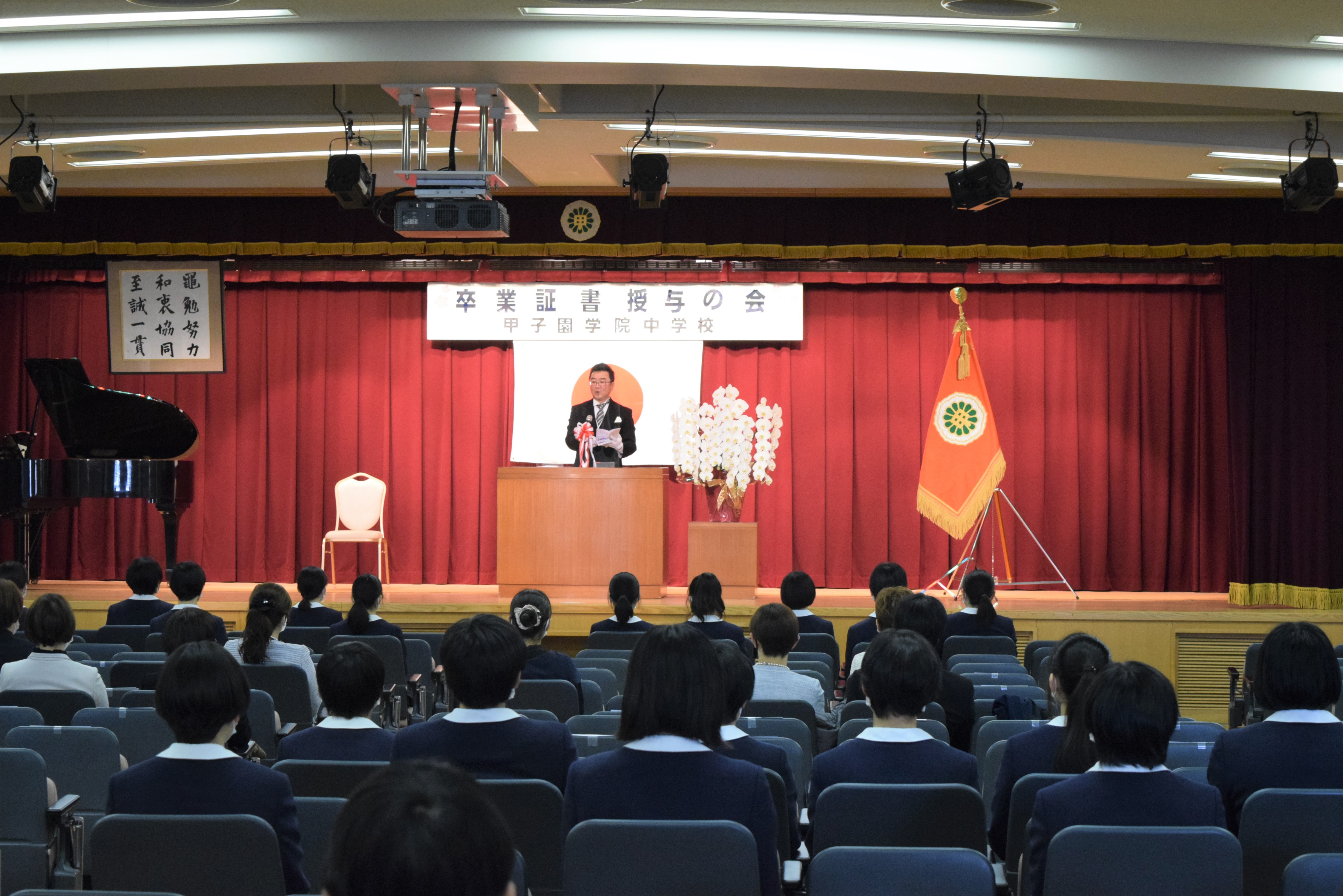 甲子園学院中学校では、9年間の義務教育の区切りとして、毎年卒業証書授与の会を実施しています。