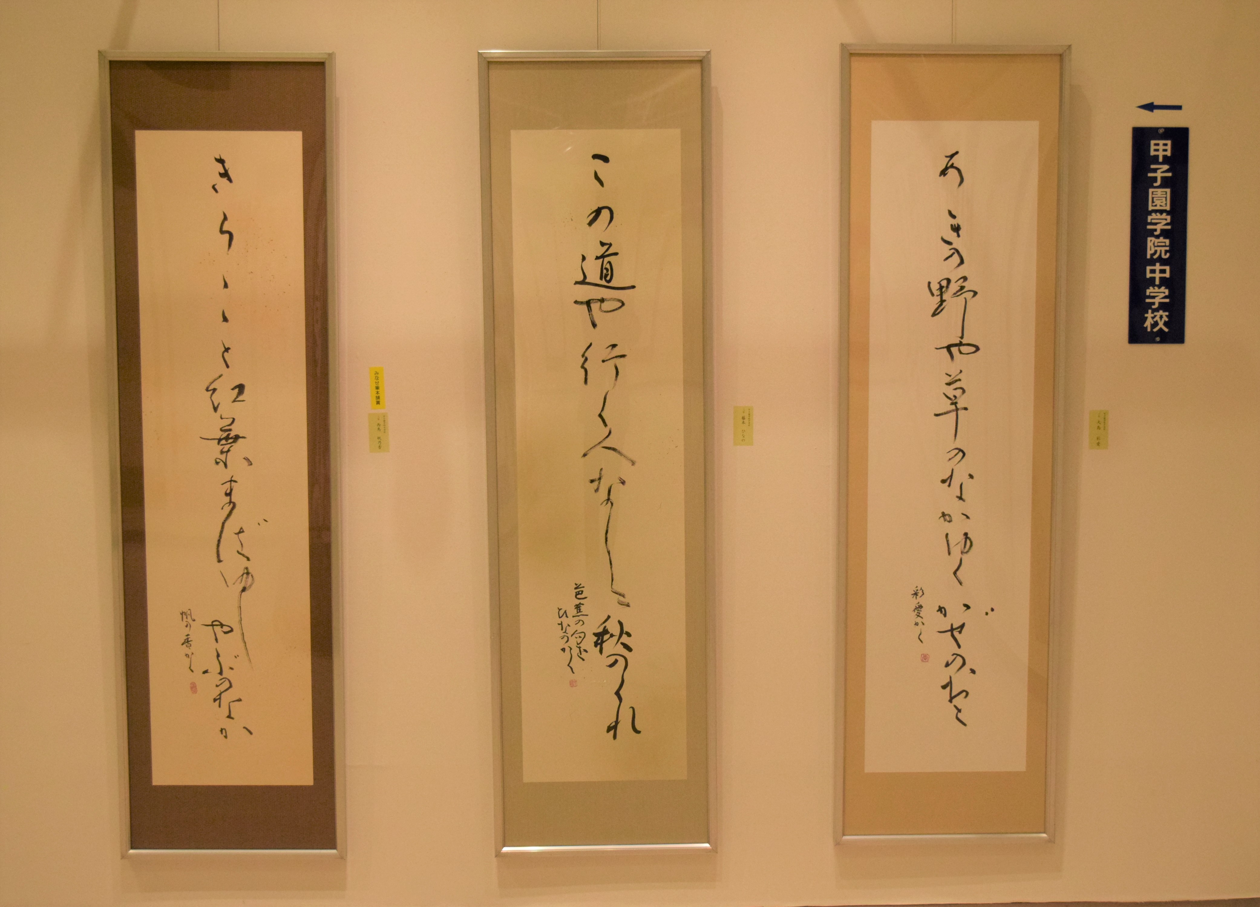 この書展には本学院中学校と高等学校をはじめ、甲子園学院小学校からも出品されています。