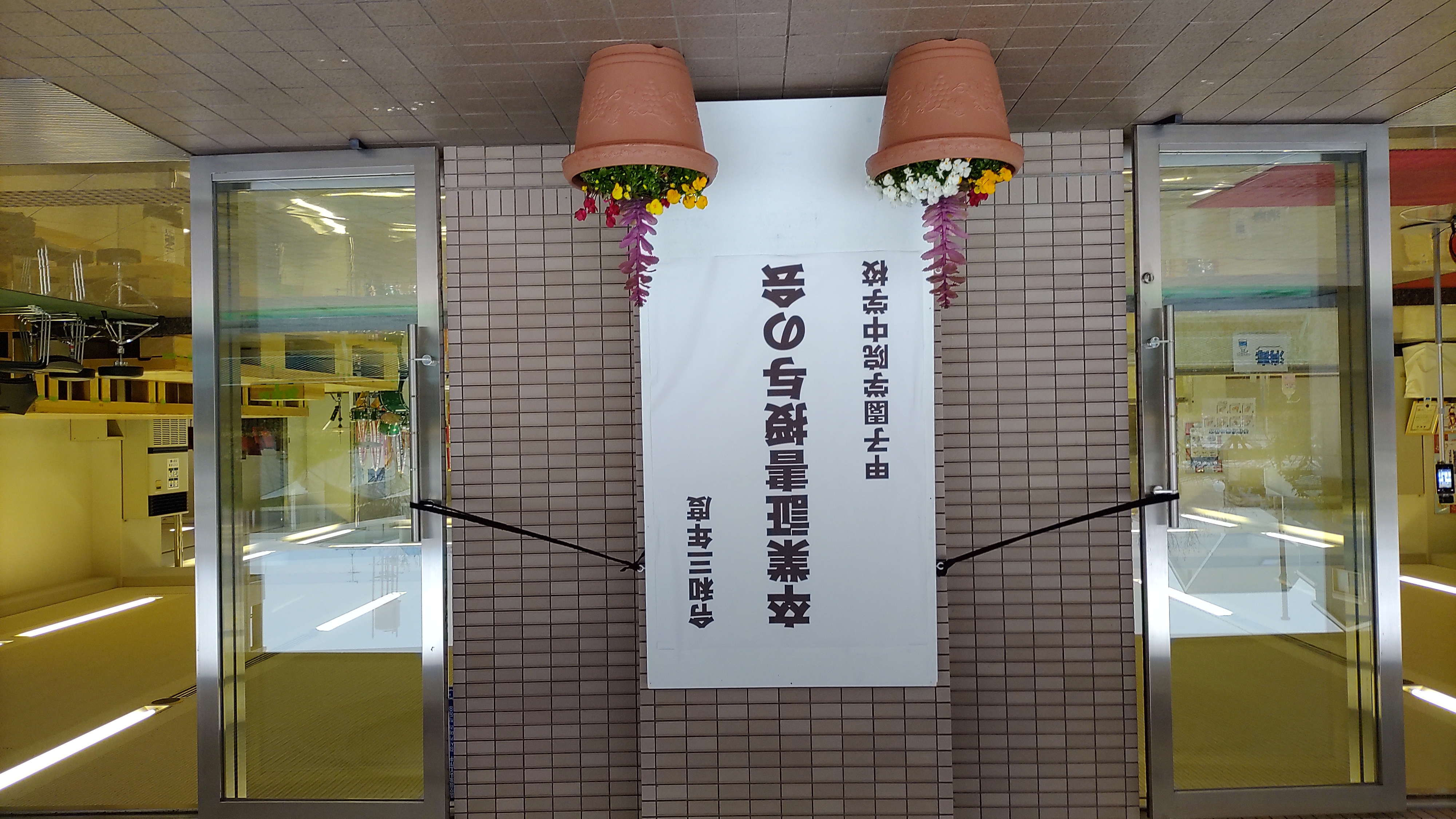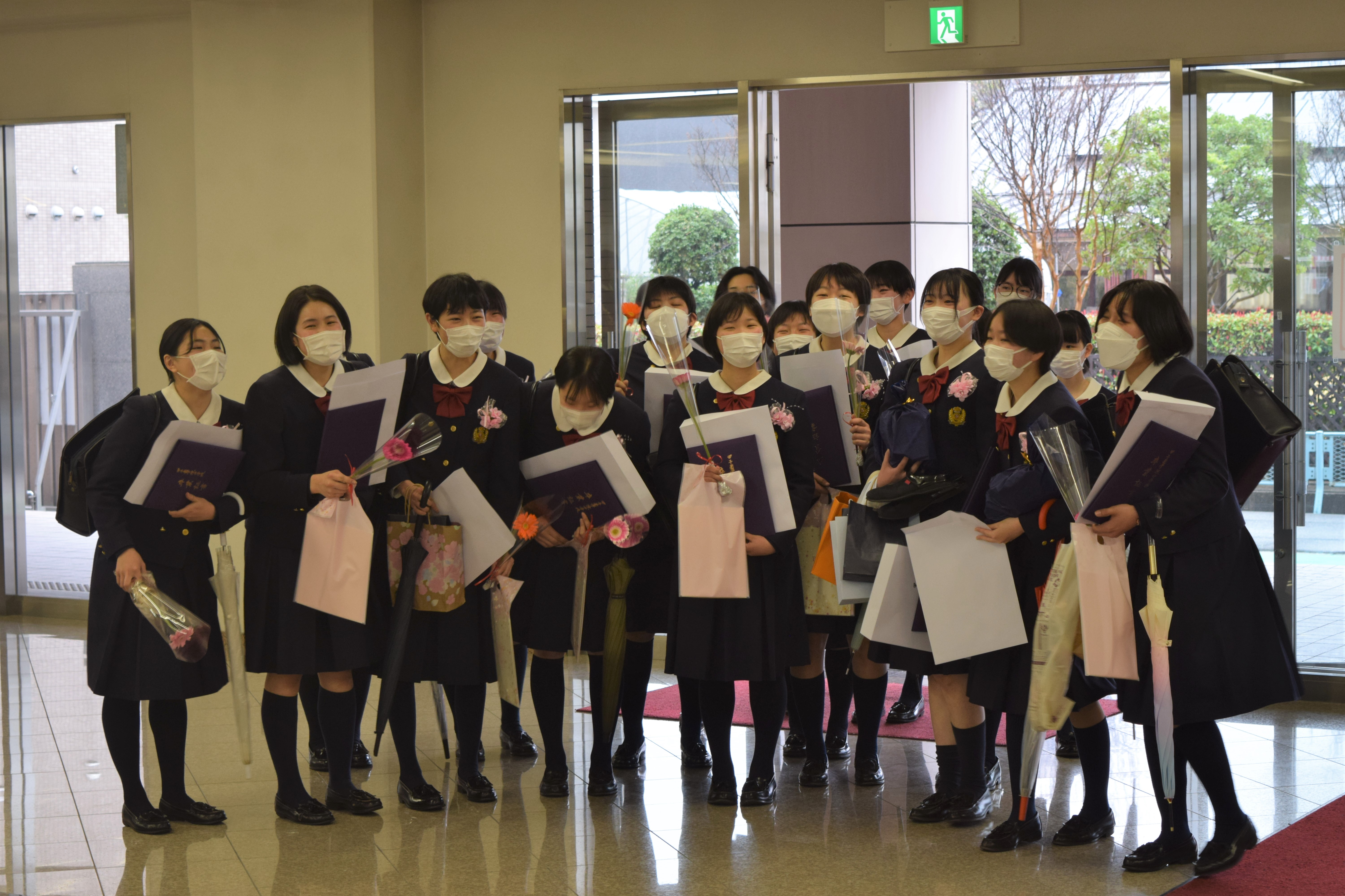 授与の会終了後、卒業生は吹奏楽部の演奏の中、在校生・保護者らのつくる花道を通り、自信と誇りを胸に中学校を巣立っていきました。