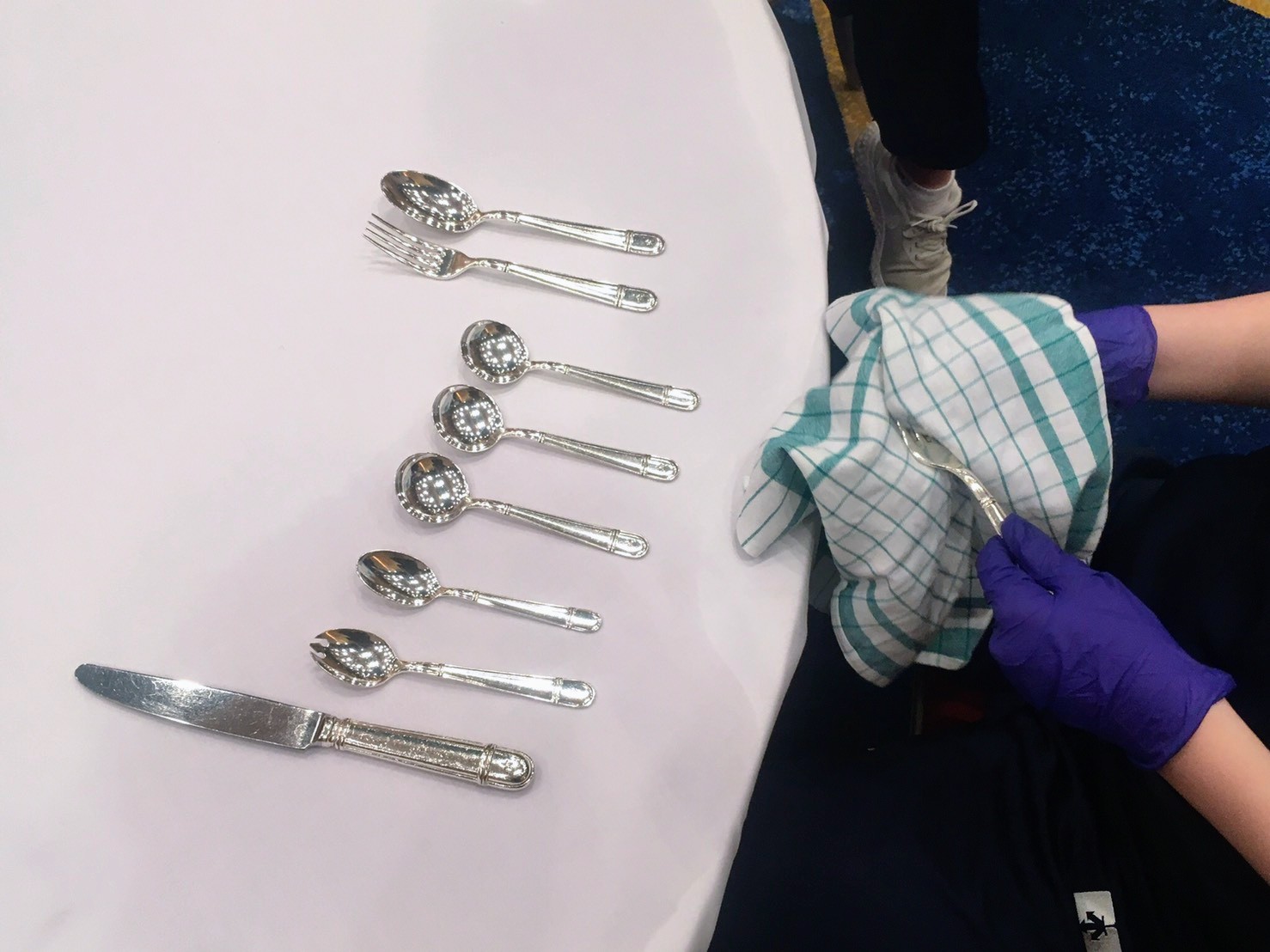 テーブルクロスやシーツにしわがつかないようにするのは思いのほか大変な作業でしたが、どの生徒も一生懸命取り組んでいました。