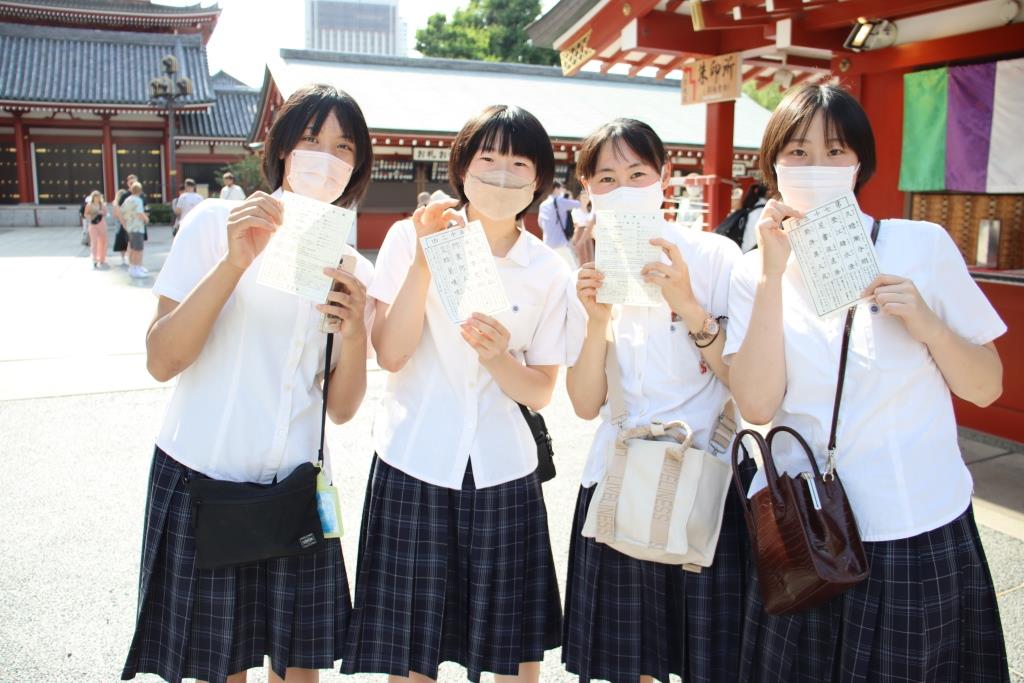 次に、班毎に浅草の仲見世通りの散策を楽しんだ後、東京スカイツリーにのぼり、東京の街を一望しました。