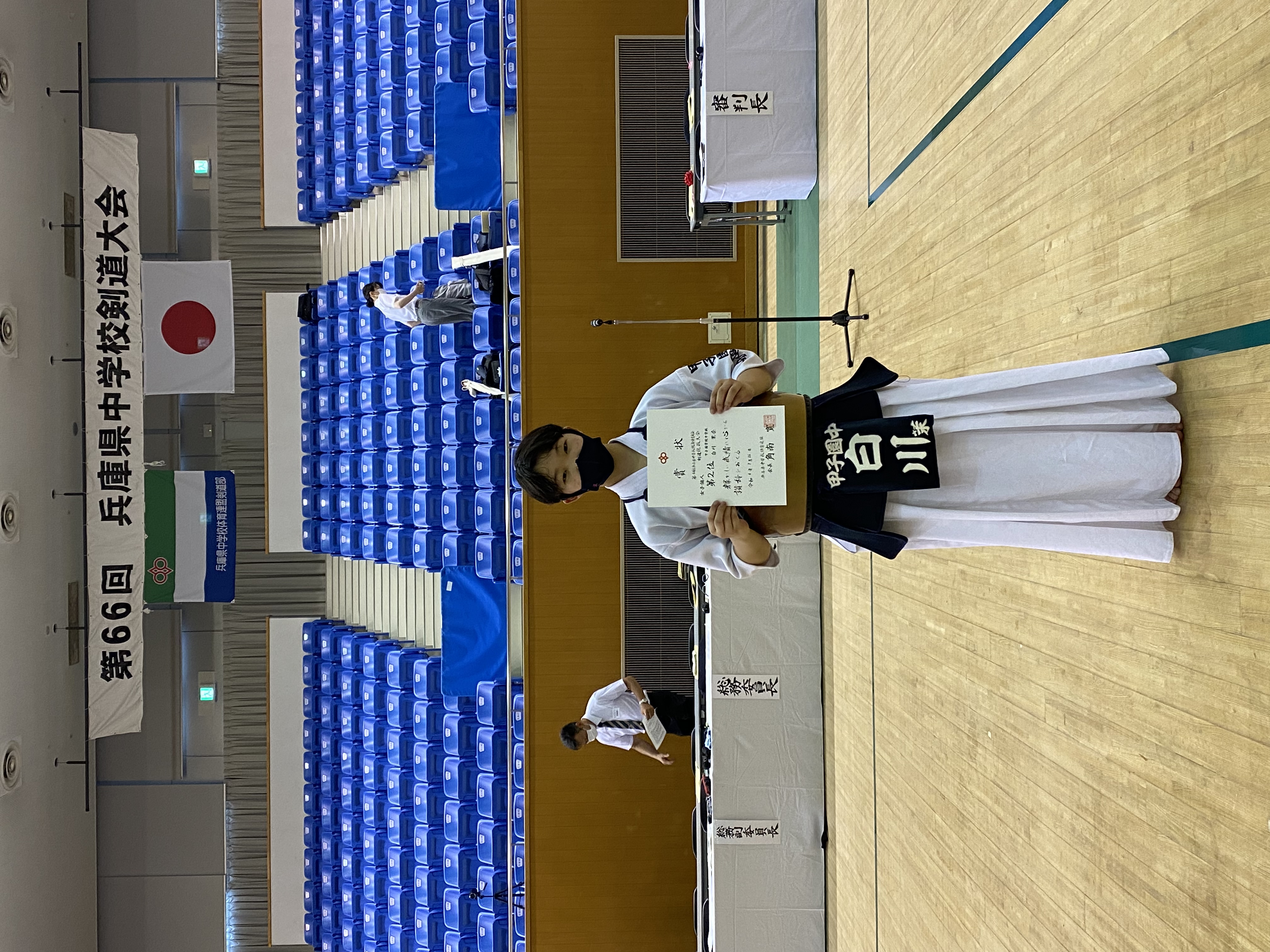 7月26日(火)に兵庫県立武道館(姫路市)にて行われました令和4年度(第66回)兵庫県中学校総合体育大会(剣道大会)において、本校中学校剣道部の白川茉奈さん(中3)が個人戦で準優勝を果たしました。