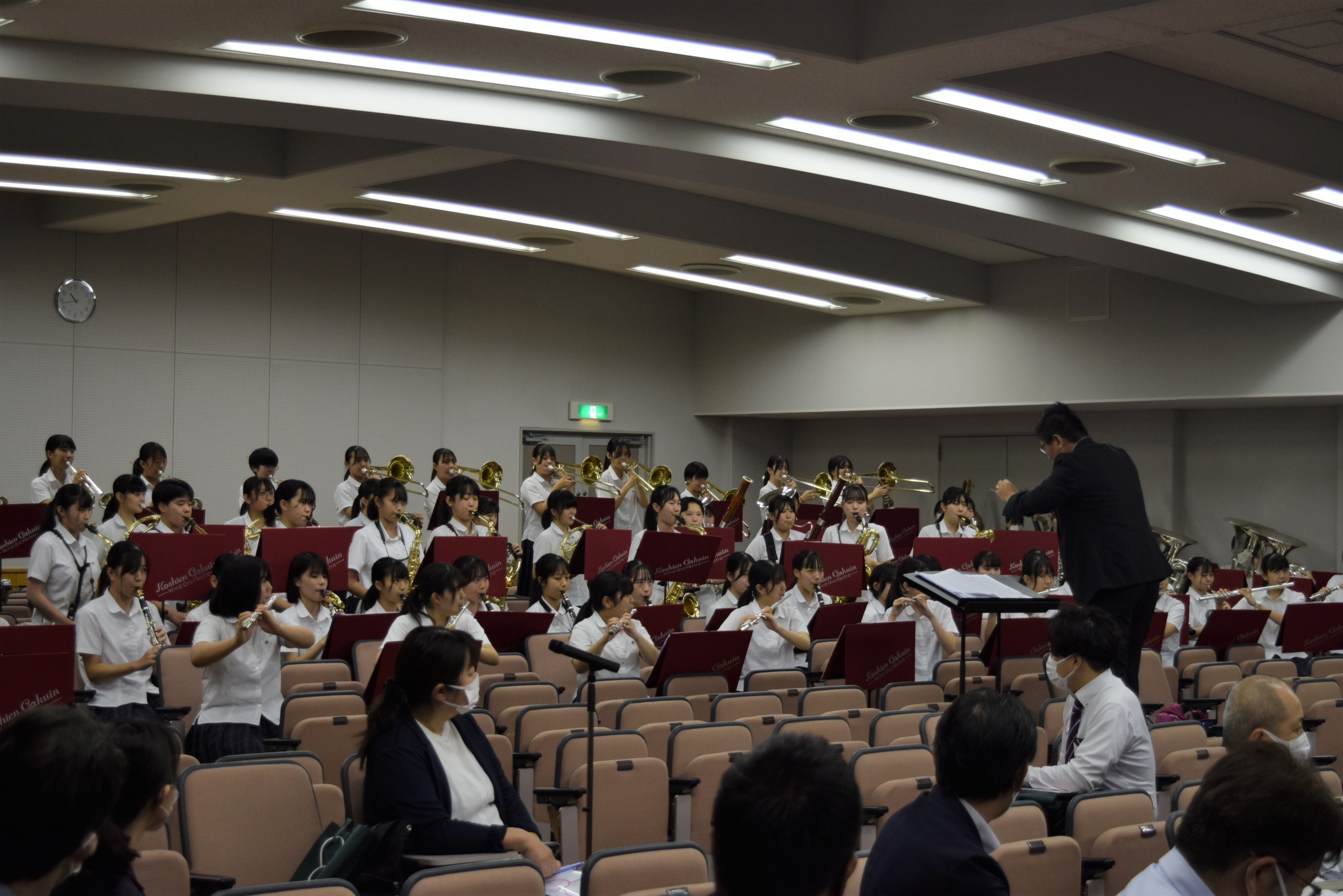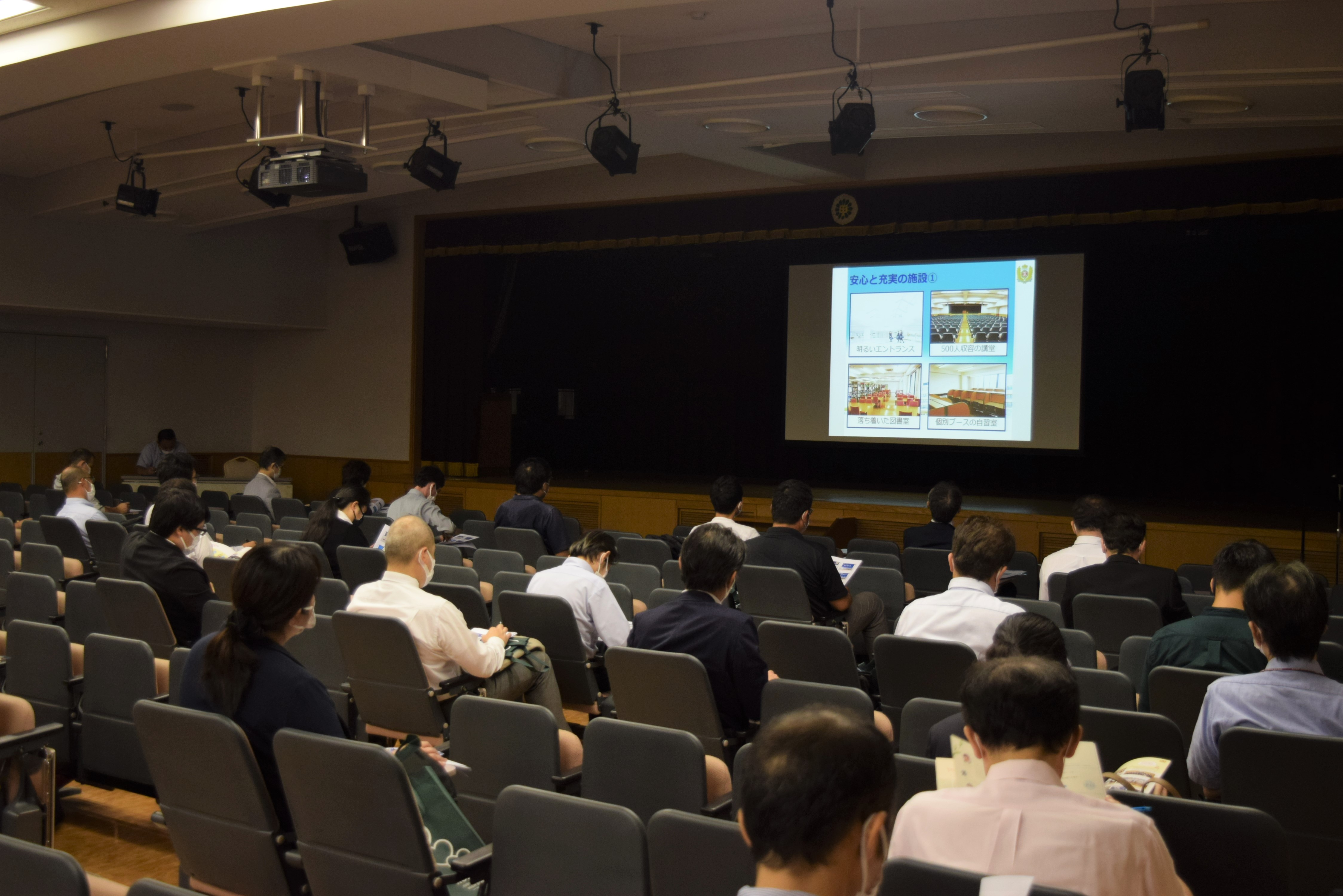 今年度も感染症対策を行いながら、初めに、公開部活動として本校吹奏楽部の歓迎演奏をお聴きいただいた後、全体説明会を行い、中学校での取り組みや高等学校新コース制に加え、2023年(令和5年)度入試の概要について説明いたしました。