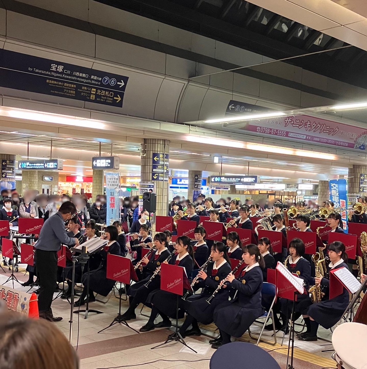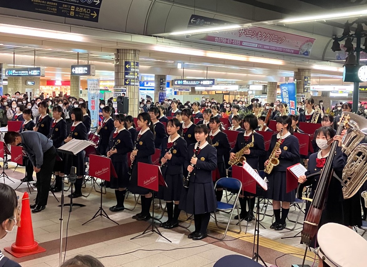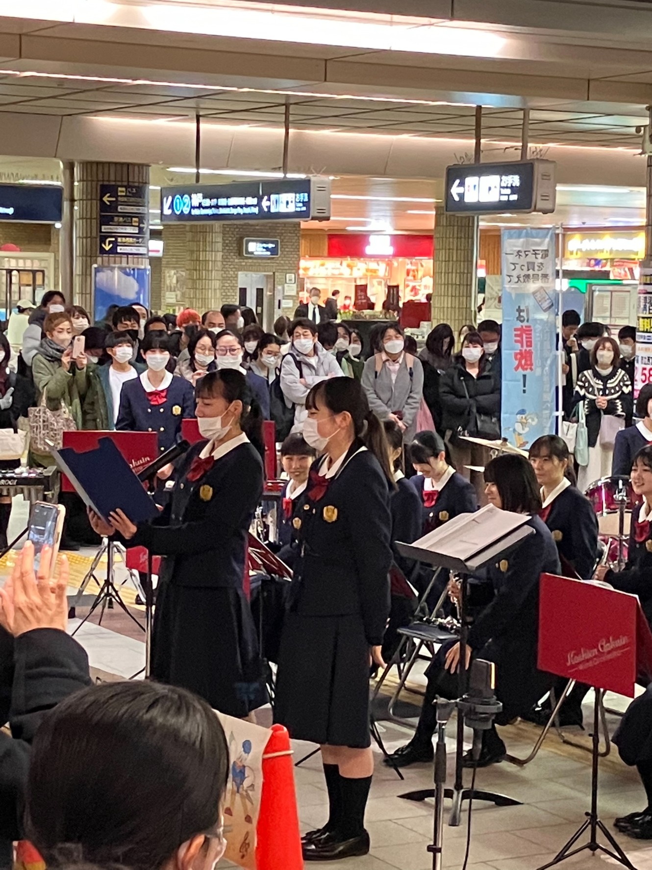 12月1日(木)、18時より阪急西宮北口駅構内(カリヨン広場)で開催されました西宮警察署主催の「年末の交通事故防止運動」にて、本校吹奏楽部が演奏を披露しました。