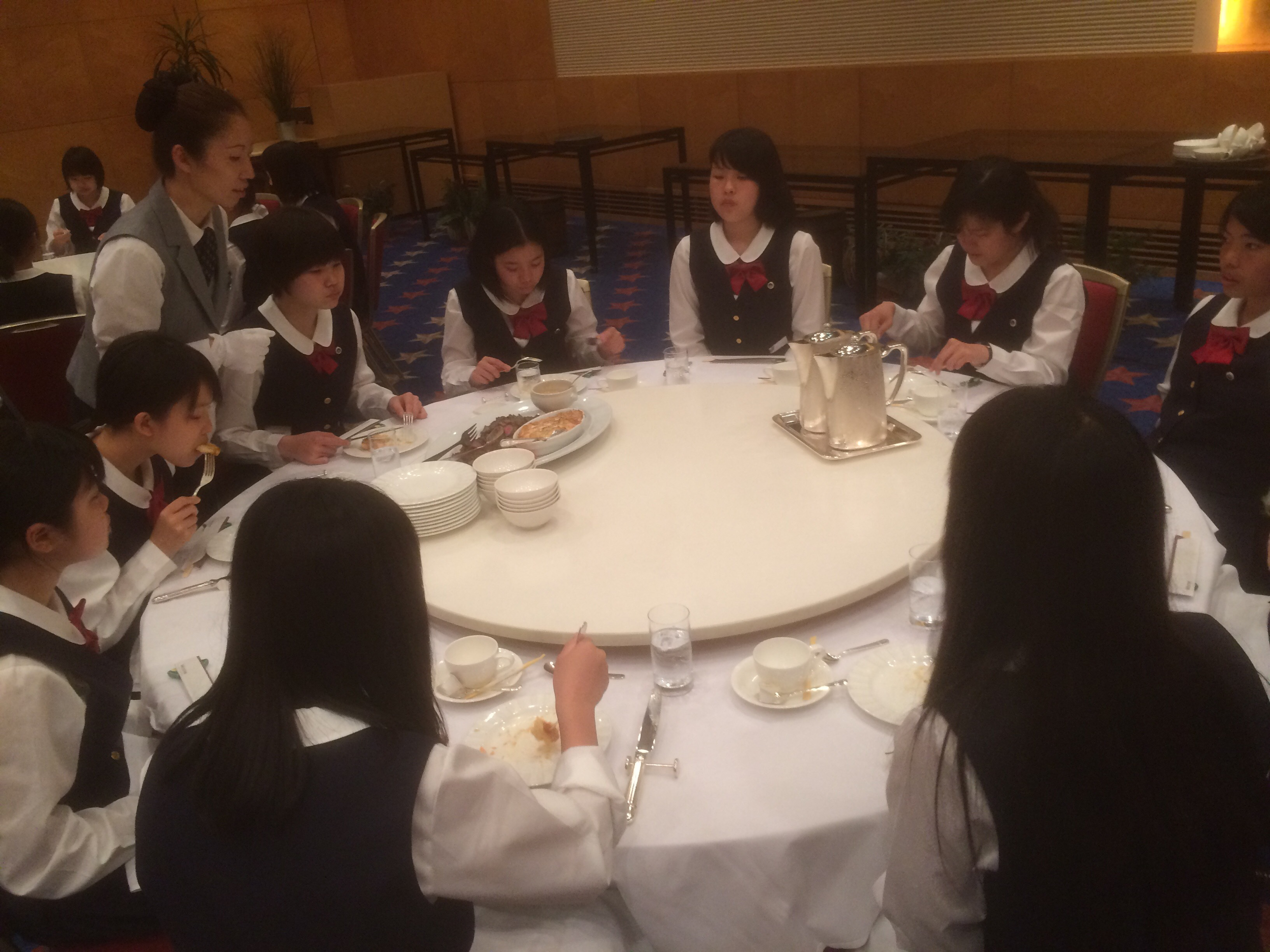 夕食ではテーブルマナーを学び、普段の生活では体験できないことばかりで、とても貴重な一日となりました。