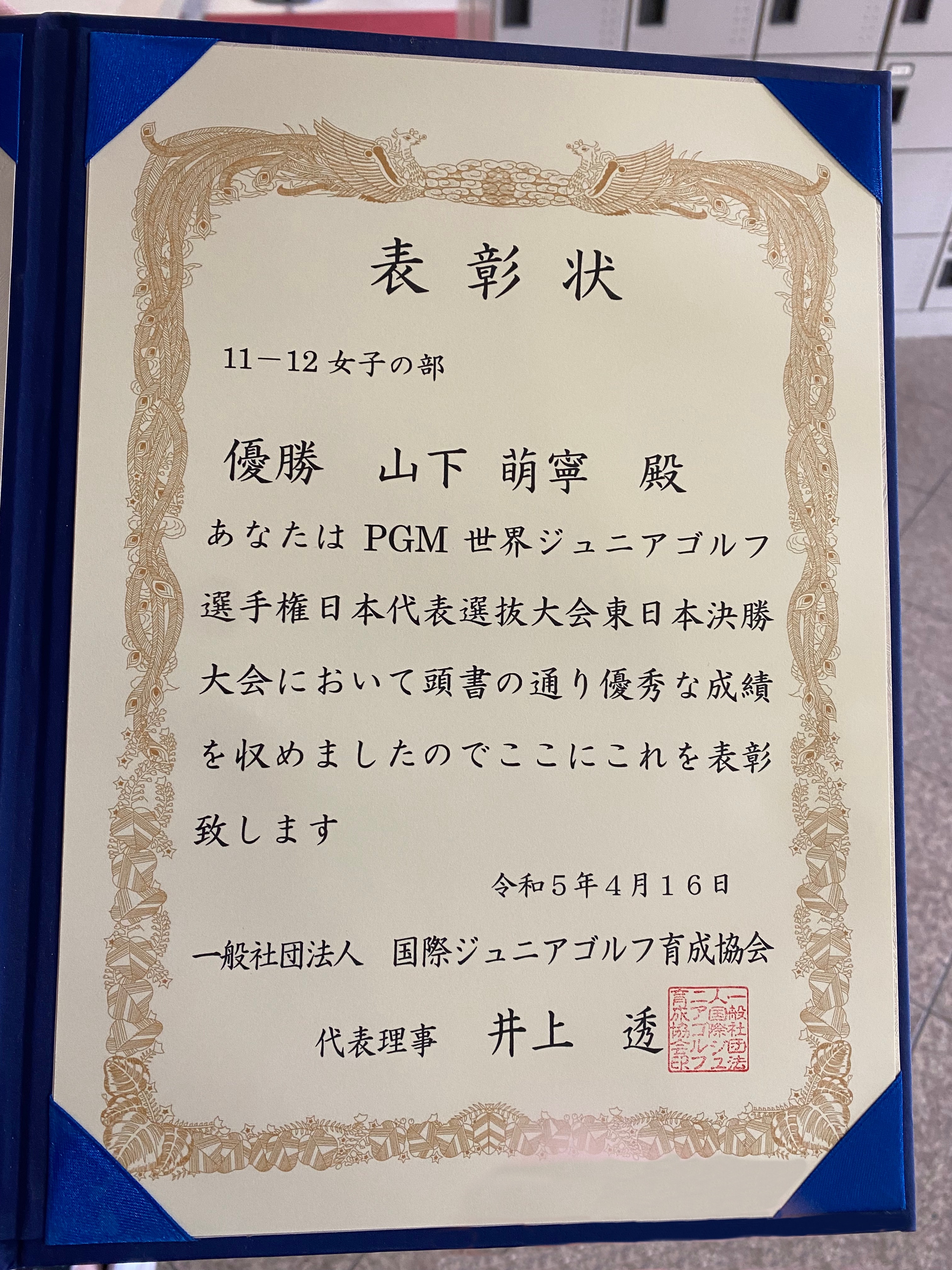 4月15日(土)〜4月16日(日)の期間、美浦ゴルフ倶楽部にて行われたPGM世界ジュニアゴルフ選手権日本代表選抜大会東日本決勝大会11-12歳女子の部において、本校中学校 第1学年 山下 萌寧さんが優勝しました。