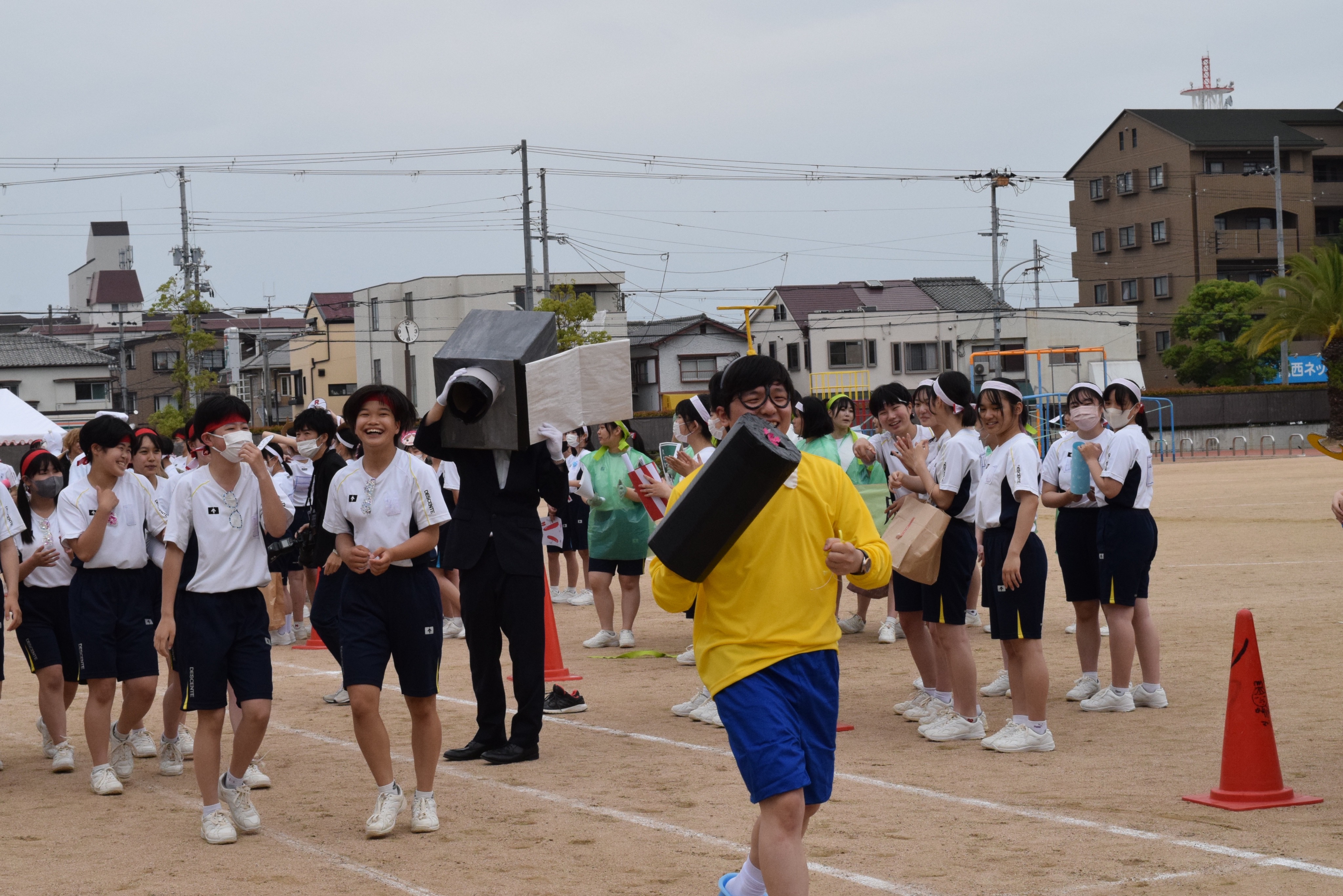 その結果、クラス対抗仮装行列の優勝は高校2年1組と2年2組、第3位は中学1年生と高校1年3組、総合成績による優勝は中学校、第2位が高校2年生、第3位が高校3年生となりました。