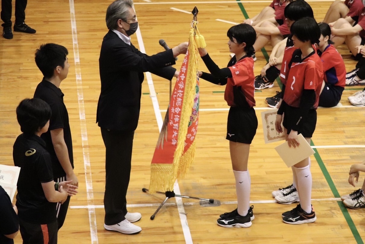 塩瀬中学校にて行われました令和5年度第43回西宮市中学校総合体育大会において、本校中学校バレーボール部が昨年に引き続き優勝をしました。