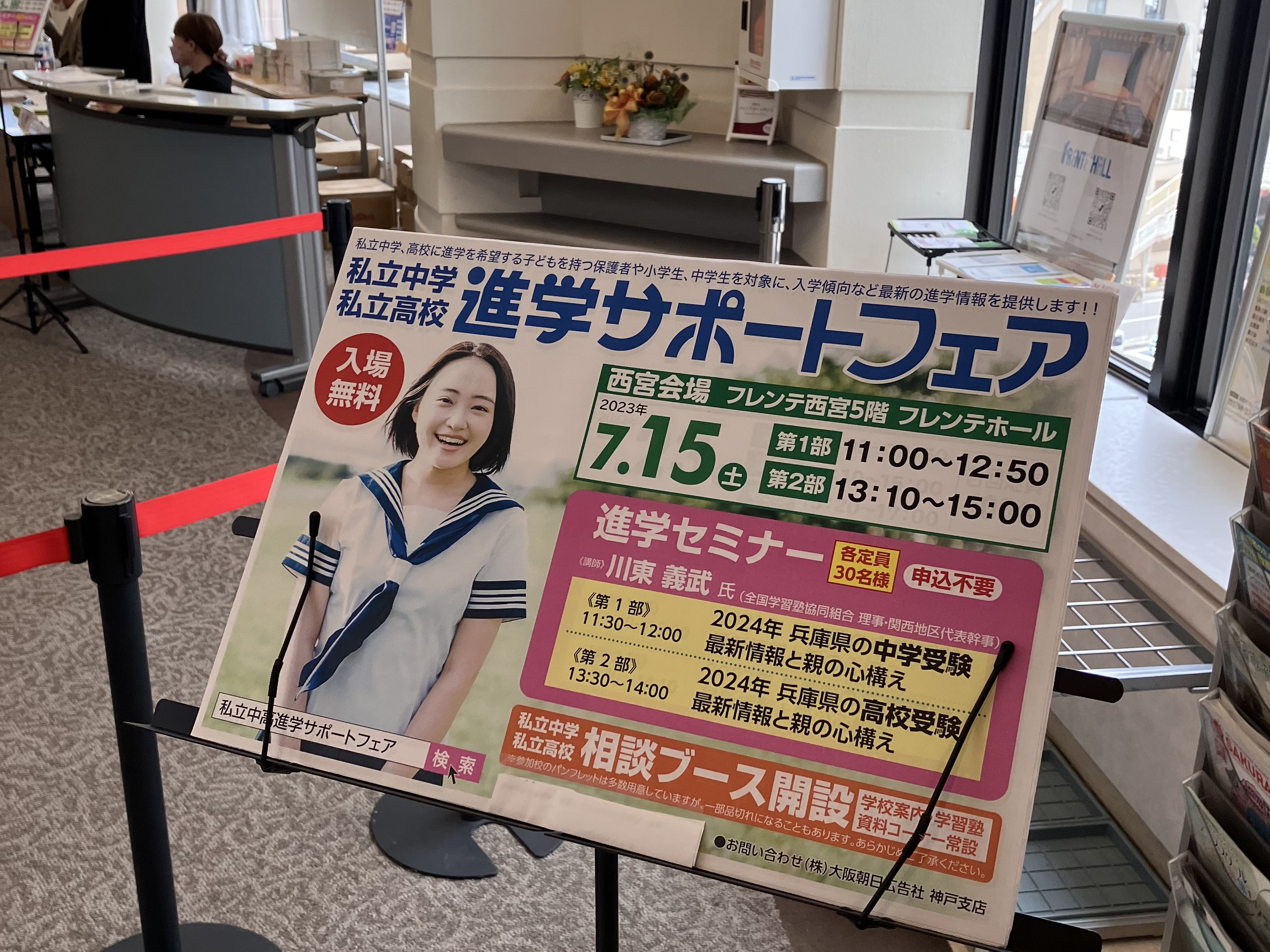 7月15日(土)、フレンテ西宮 5階フレンテホールにて「私立中学校・高等学校 進学サポートフェア2023」(私立中学・高校入試相談会事務局主催)が開催され、ブースでの説明を行いました。