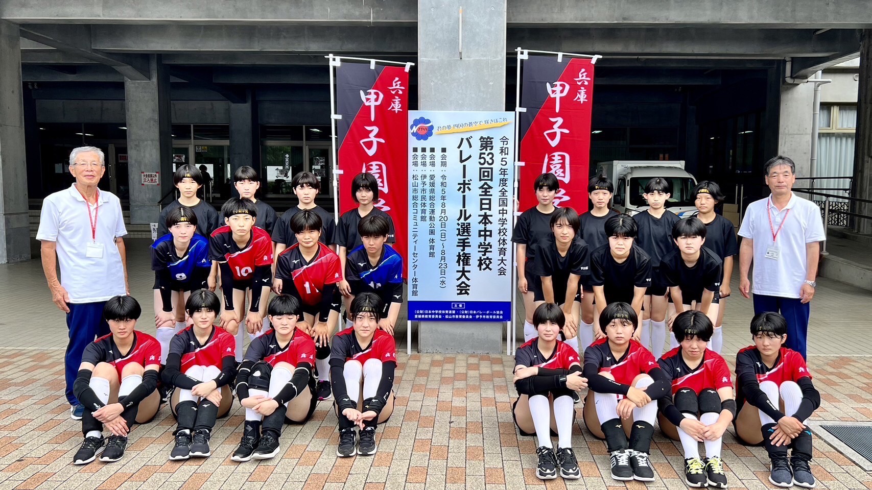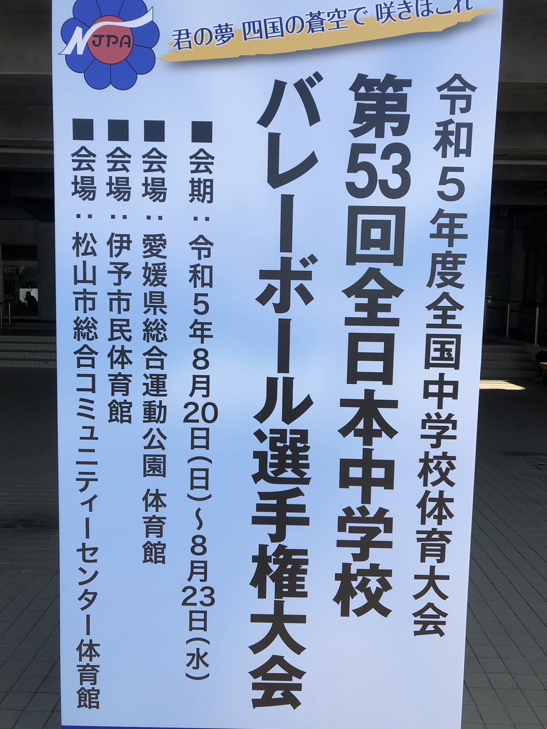 8月21日(月)から愛媛県総合運動公園体育館にて行われている令和5年度全国中学校体育大会(第53回全日本中学校バレーボール選手権大会)に、本校中学校バレーボール部が出場しました。