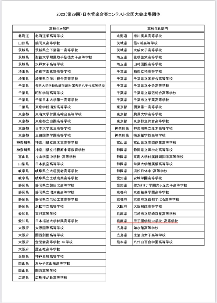 本校吹奏楽部が、2023(第29回)日本管楽合奏コンテスト全国大会 高校生B部門に7年連続で出場が決定しました。