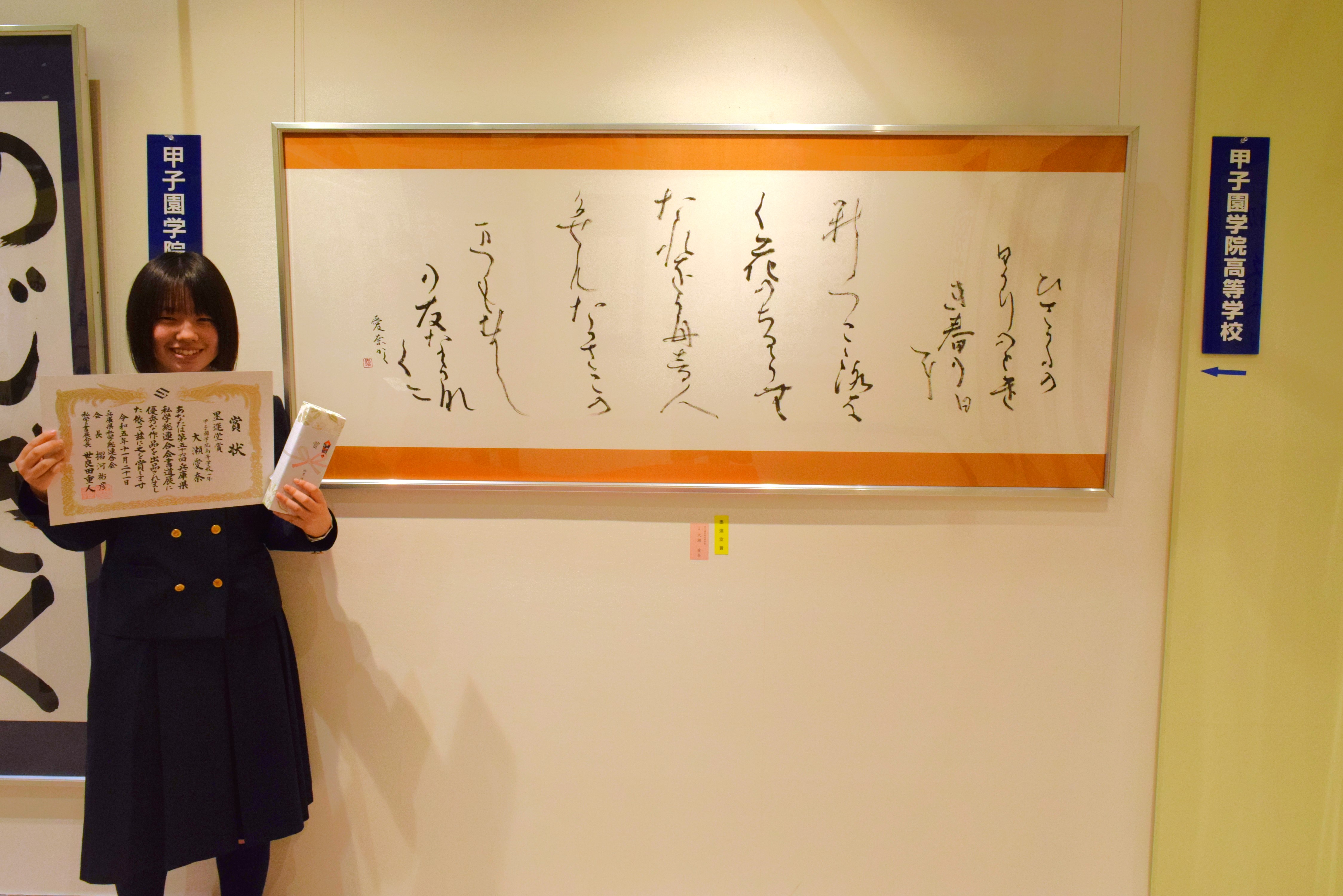 11月16日(木)~11月21日(火)の日程で開催されました兵庫県私学総連合会主催の「第56回 私学の書展」において、高等学校1年生の大瀬愛奈さんの作品が特別賞(墨運堂賞)を受賞しました。