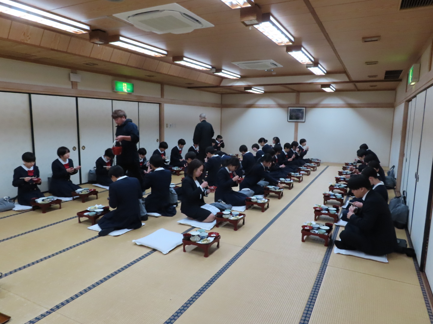 生徒たちは午前8時20分に集合し、貸切バスで高野山へ向かいました。