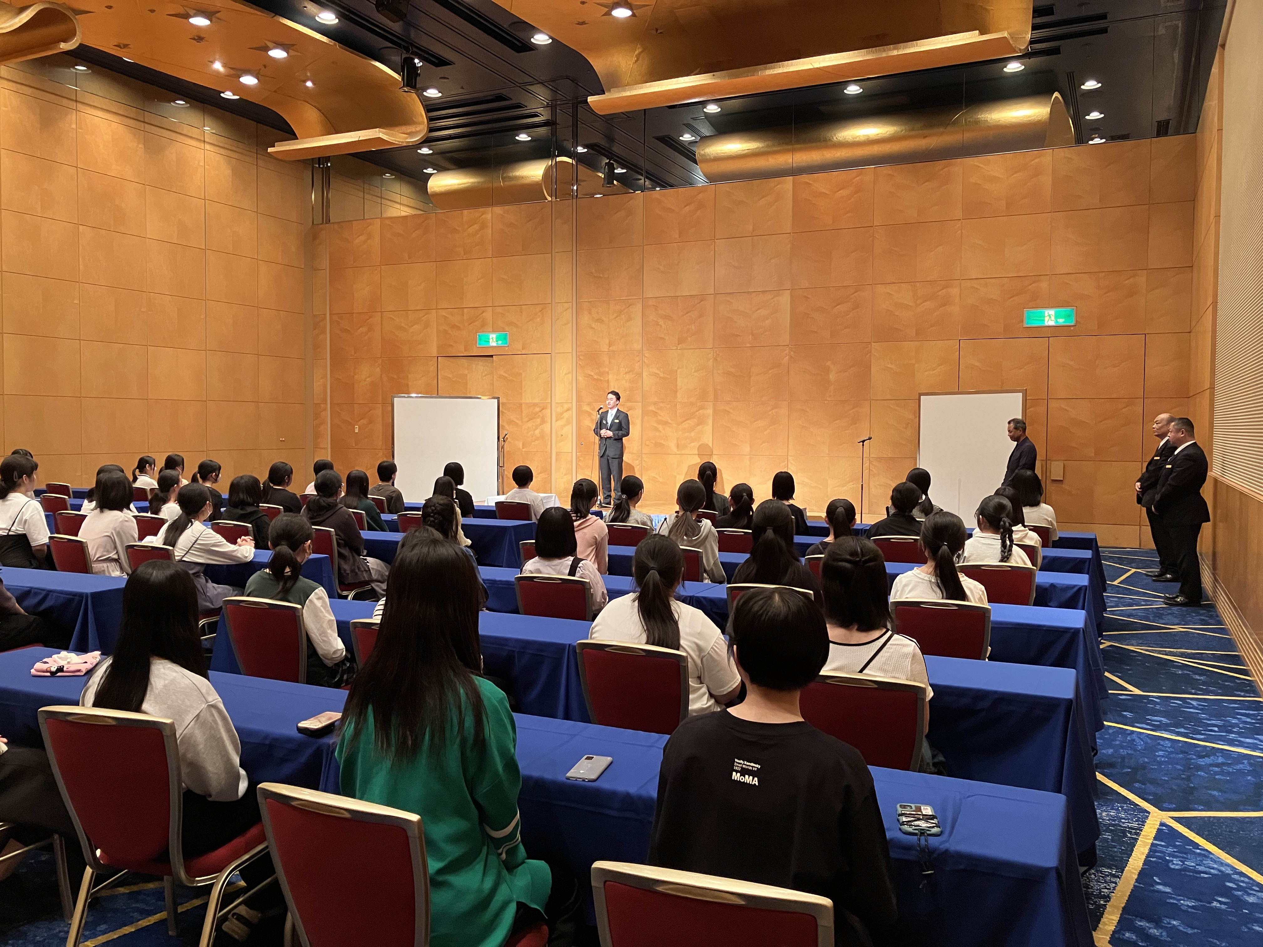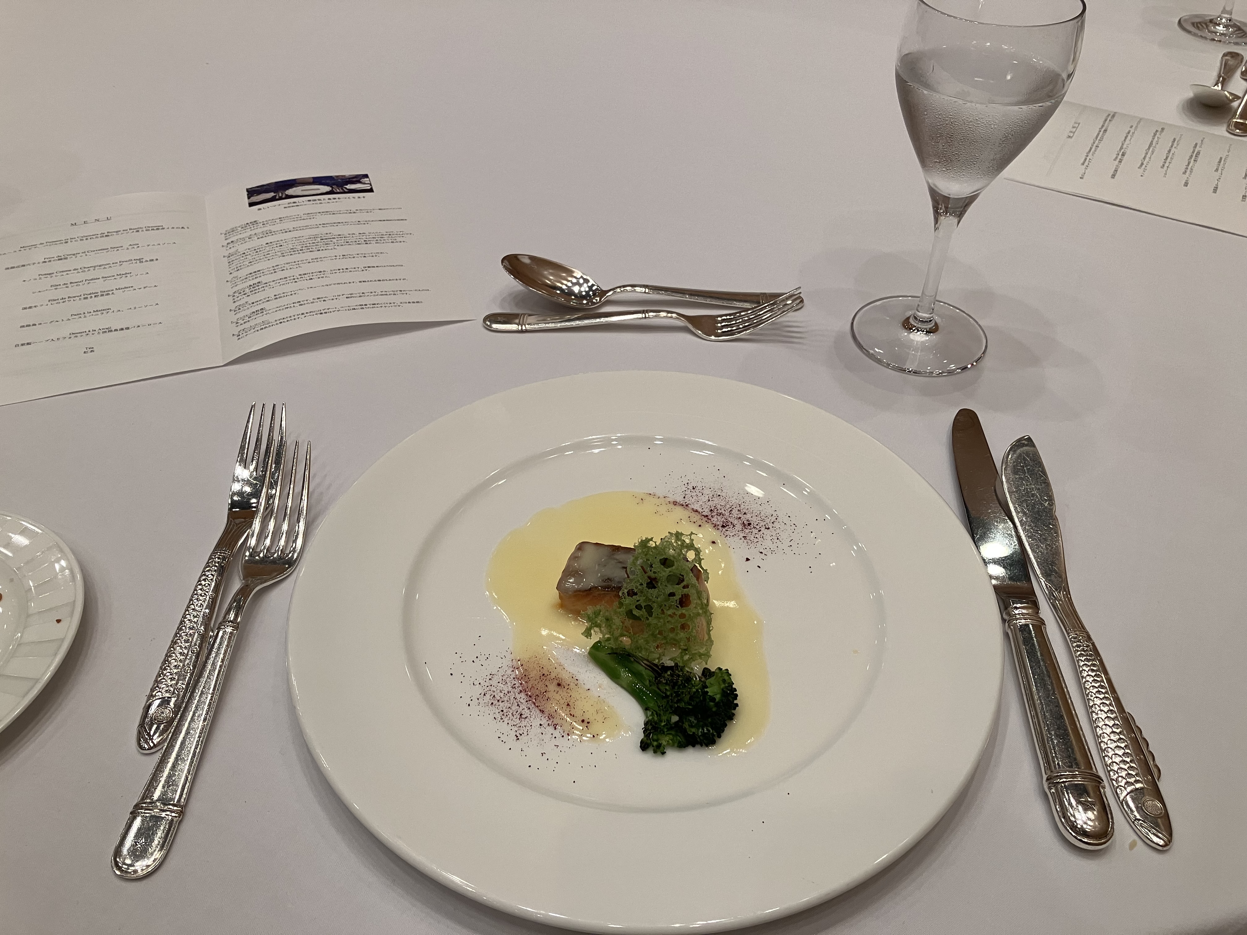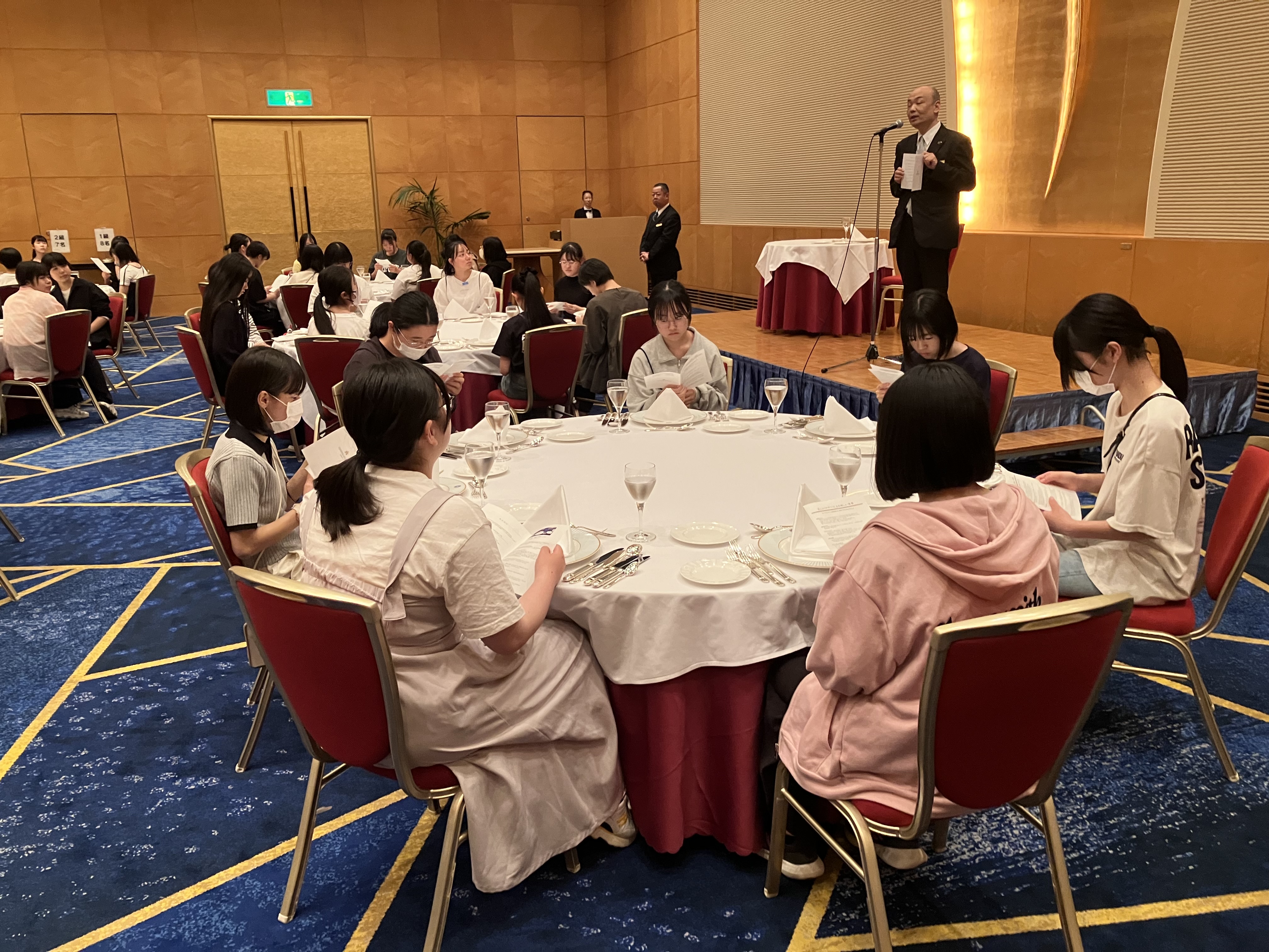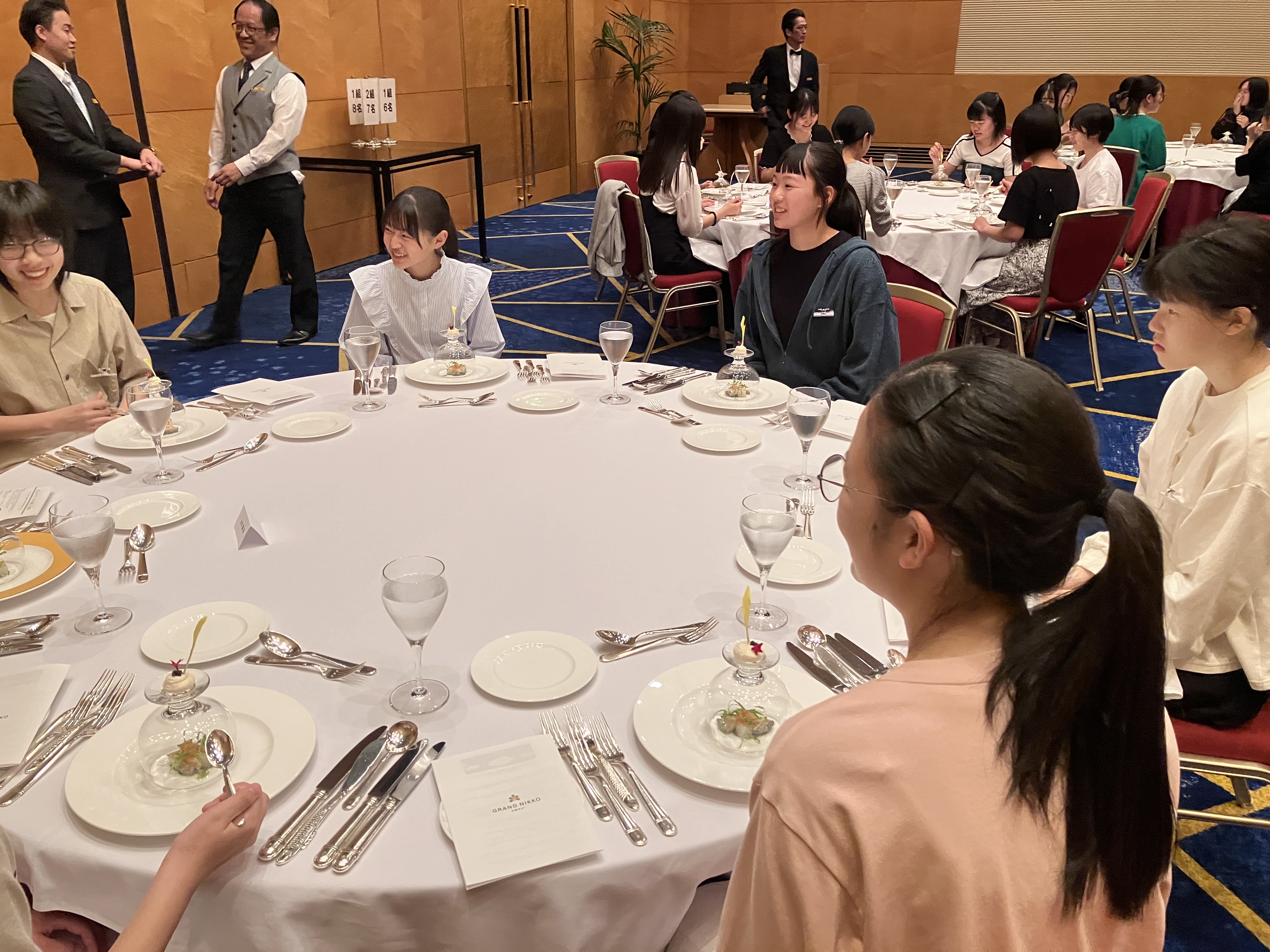 入所式の後、夕食時にテーブルマナーについて学びながらコース料理を楽しみました。