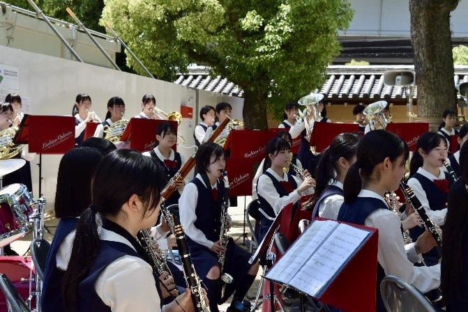 5月5日日曜日、西宮神社関西吹奏楽功労者の碑前広場にて行われました太々神楽祭/えべっさんこどもまつり「関西吹奏楽の日」に、本校吹奏楽部が参加しました。