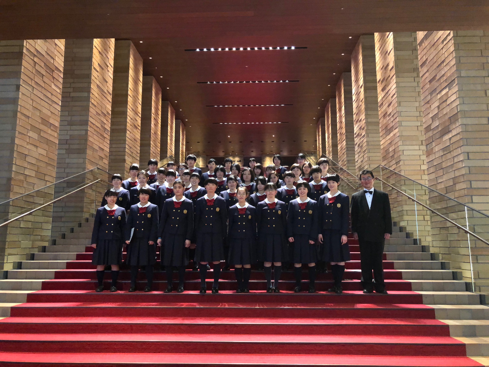 第1部の宮川彬良バージョンによる「唱歌の花束」に、本校から、宮島校長先生とともにコーラス部と有志約40名が参加しました。