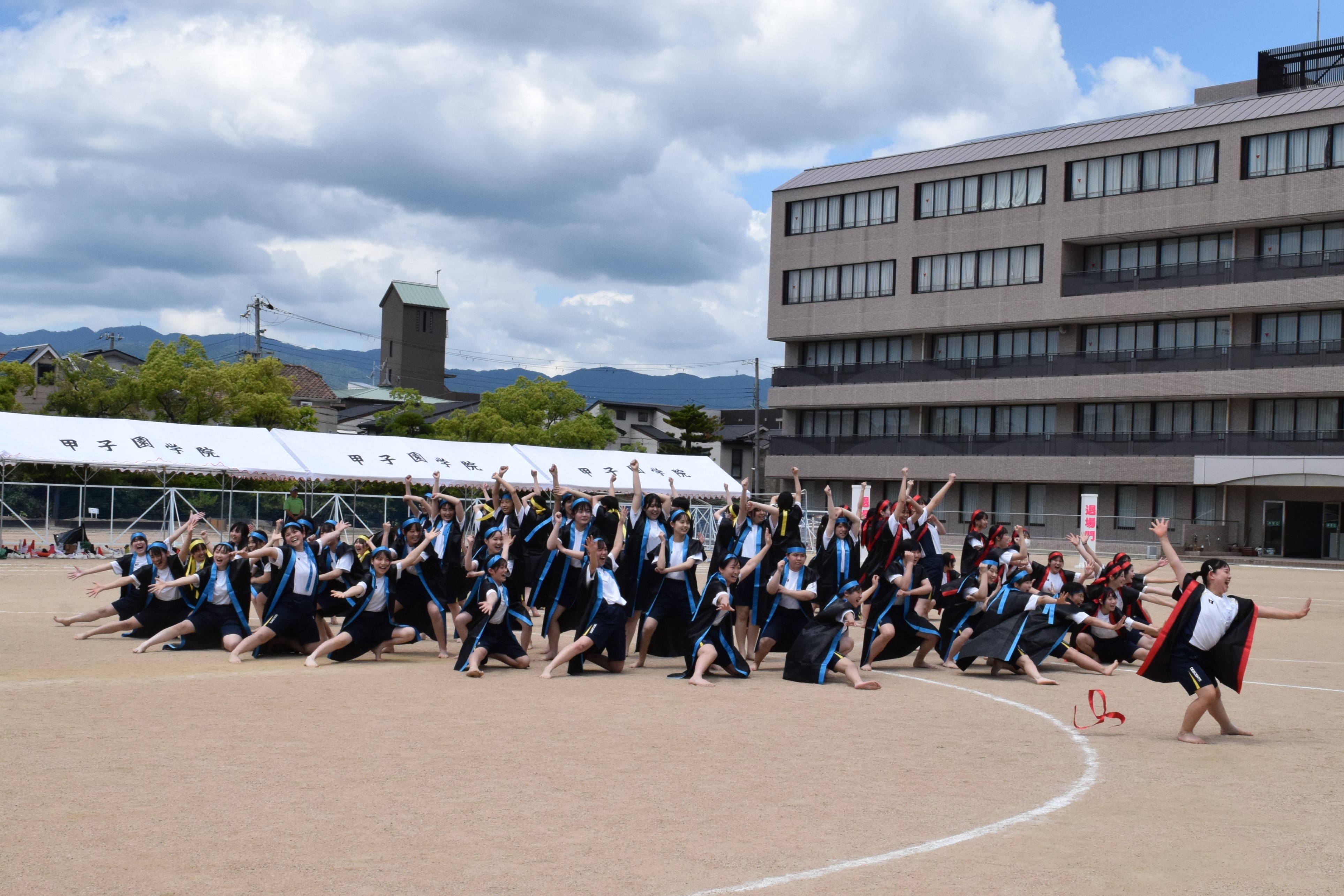 体育大会は午前中のみで7競技行い、いずれの競技も各学年・クラスが激闘を繰り広げました。今年度は高校3年生によるマスゲームも行われ、全員がソーラン節のリズムに合わせ、迫力ある演技で観客を沸かせました。仮装行列の優勝は高校3年1組、第2位は3年3組、第3位は3年2組と高校2年2組 、総合成績による優勝は高校3年生、準優勝が中学生となりました。