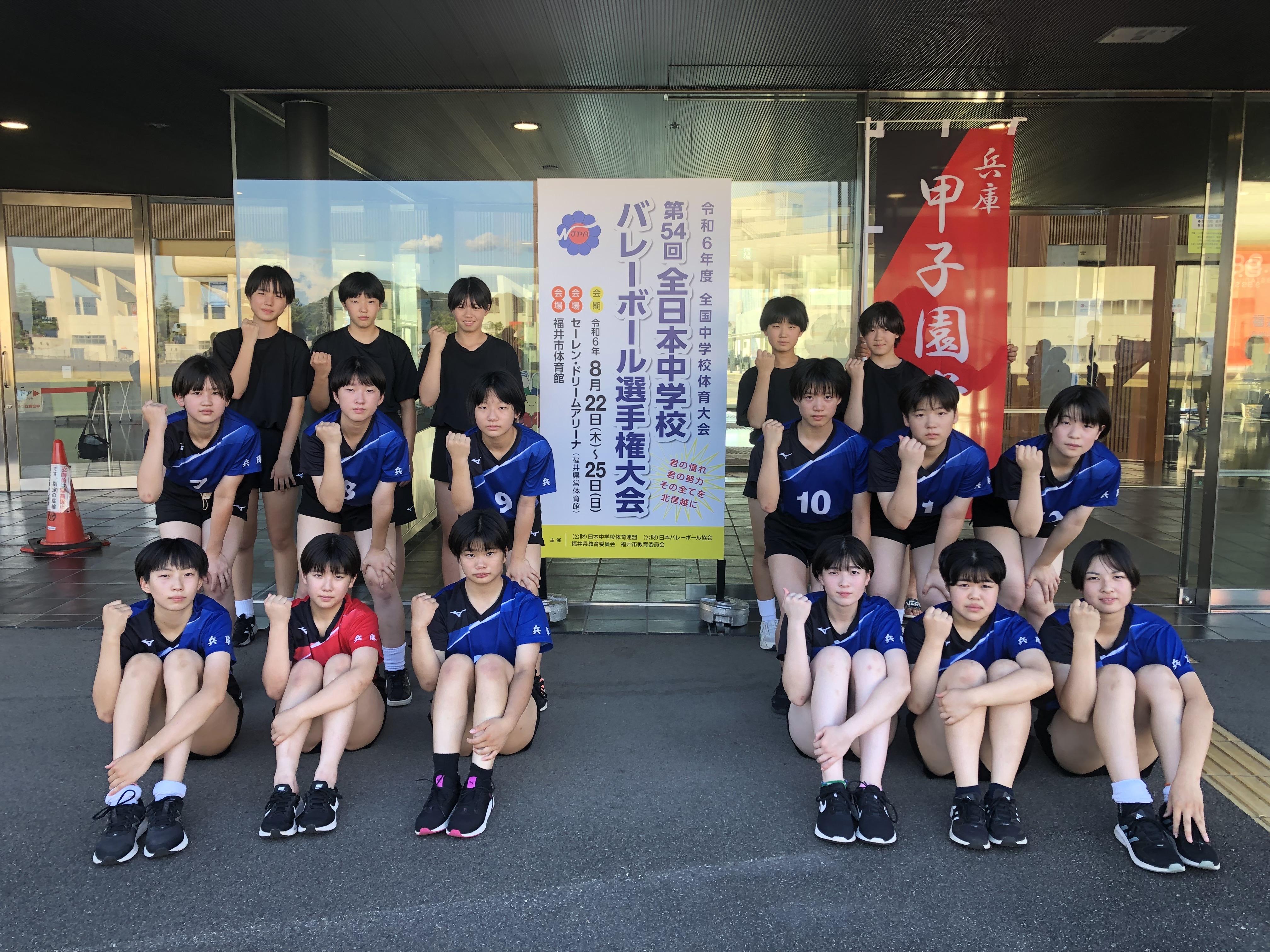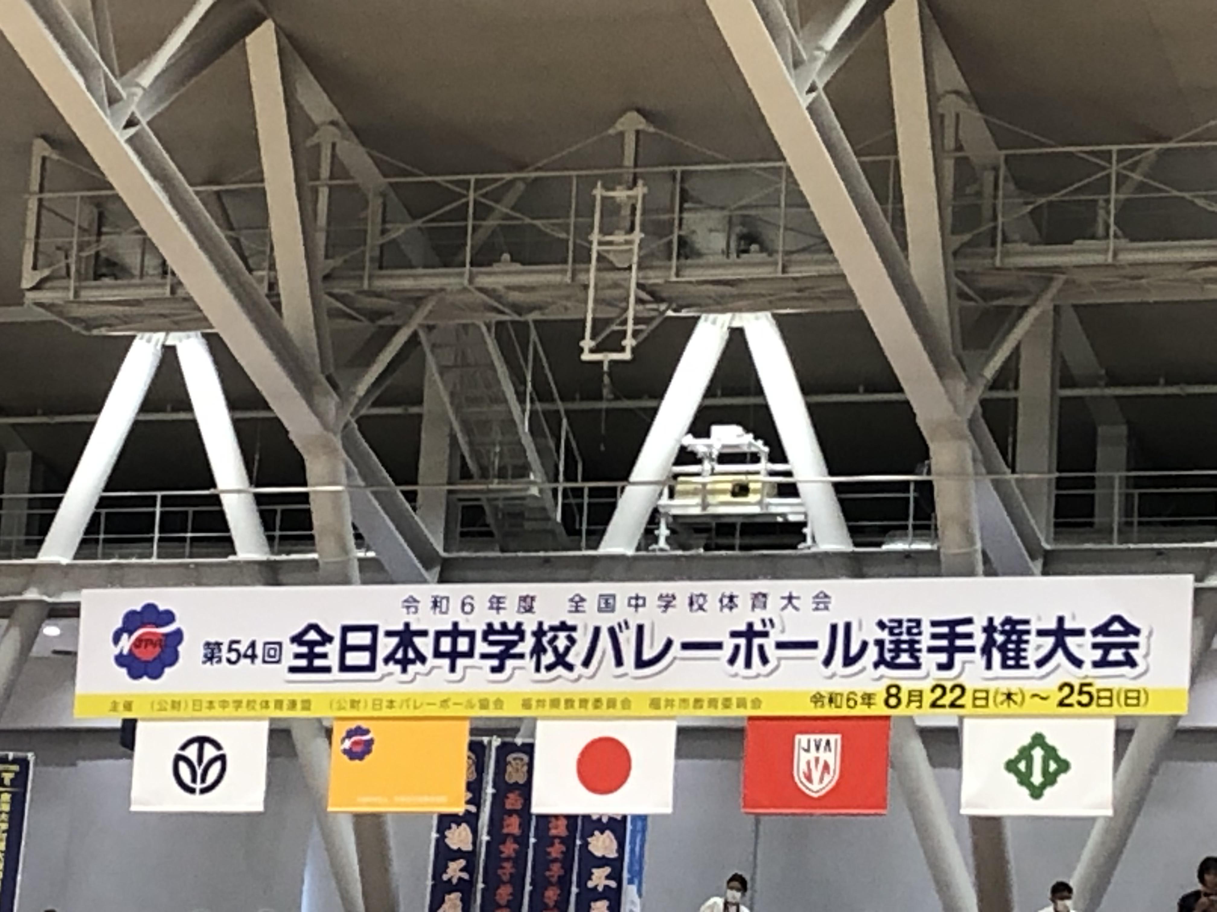 8月22日(木)からセーレン・ドリームアリーナ(福井県営体育館)にて行われている令和6年度全国中学校体育大会(第54回全日本中学校バレーボール選手権大会)に、本校中学校バレーボール部が出場しました。