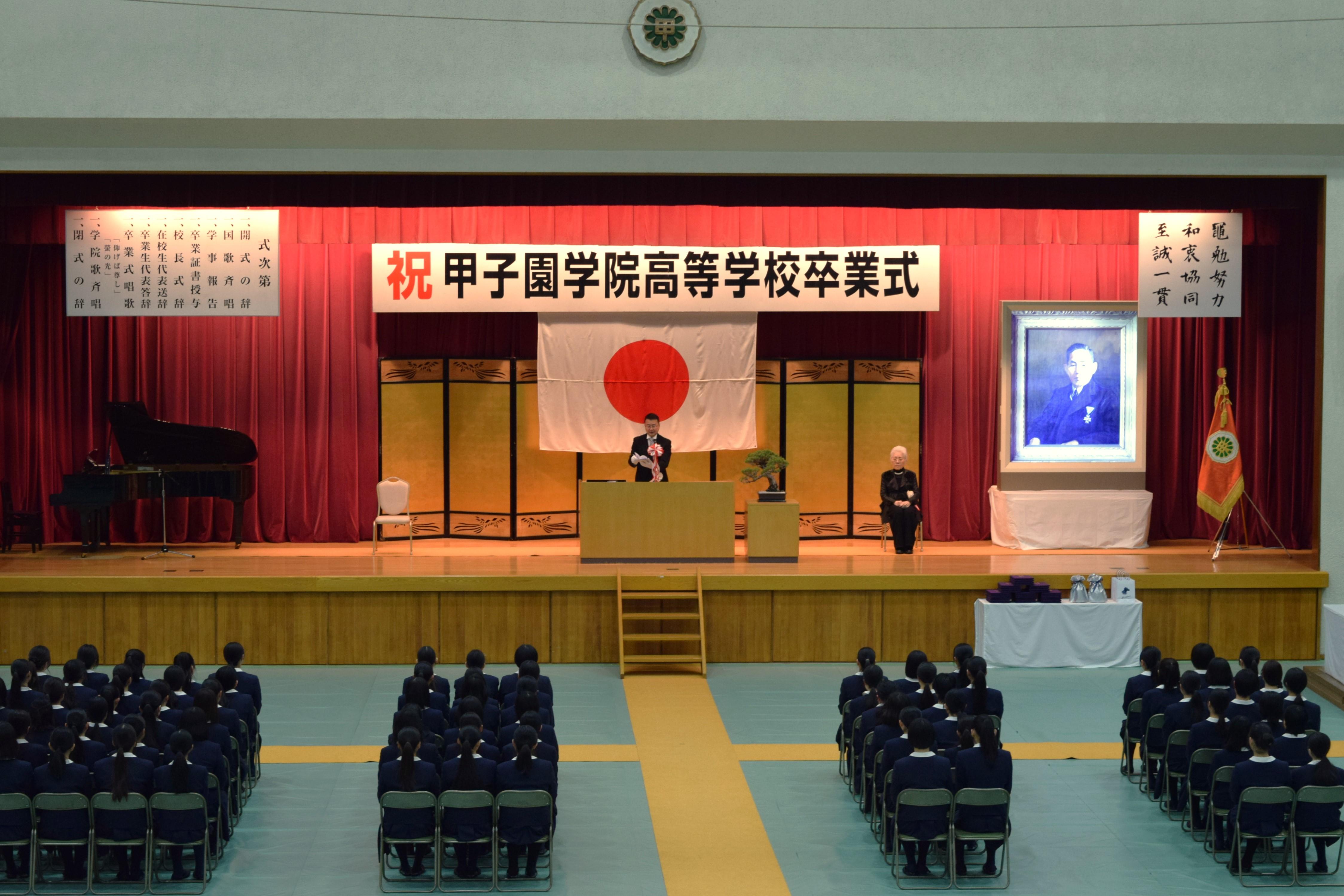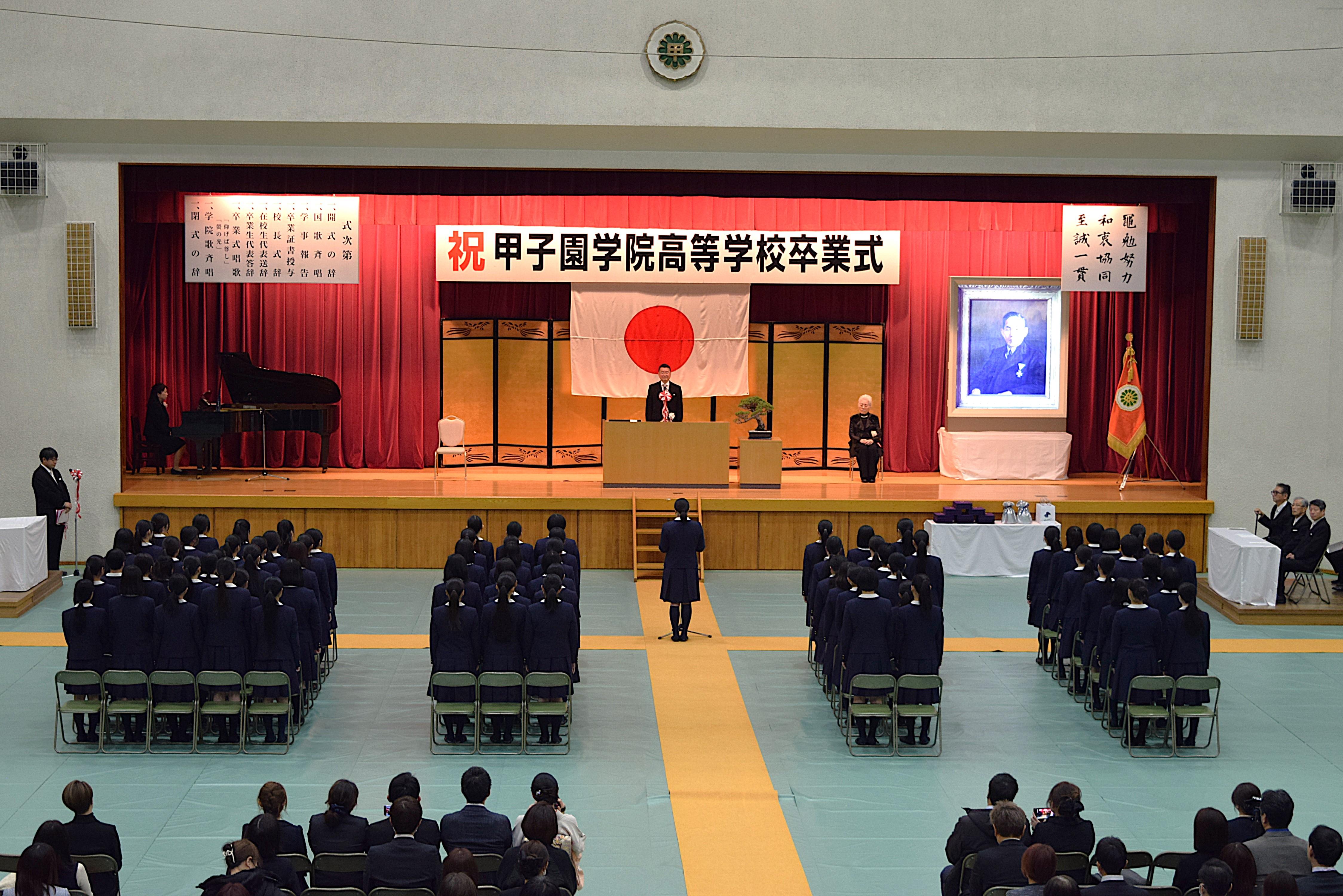 式では、卒業証書授与をはじめ、3か年皆勤、精勤生徒への表彰ならびに在校生代表の送辞、卒業生代表の答辞、そして卒業生・在校生・教職員が一体となっての卒業式唱歌、学院歌の斉唱が行われ、式場は感動に包まれました。