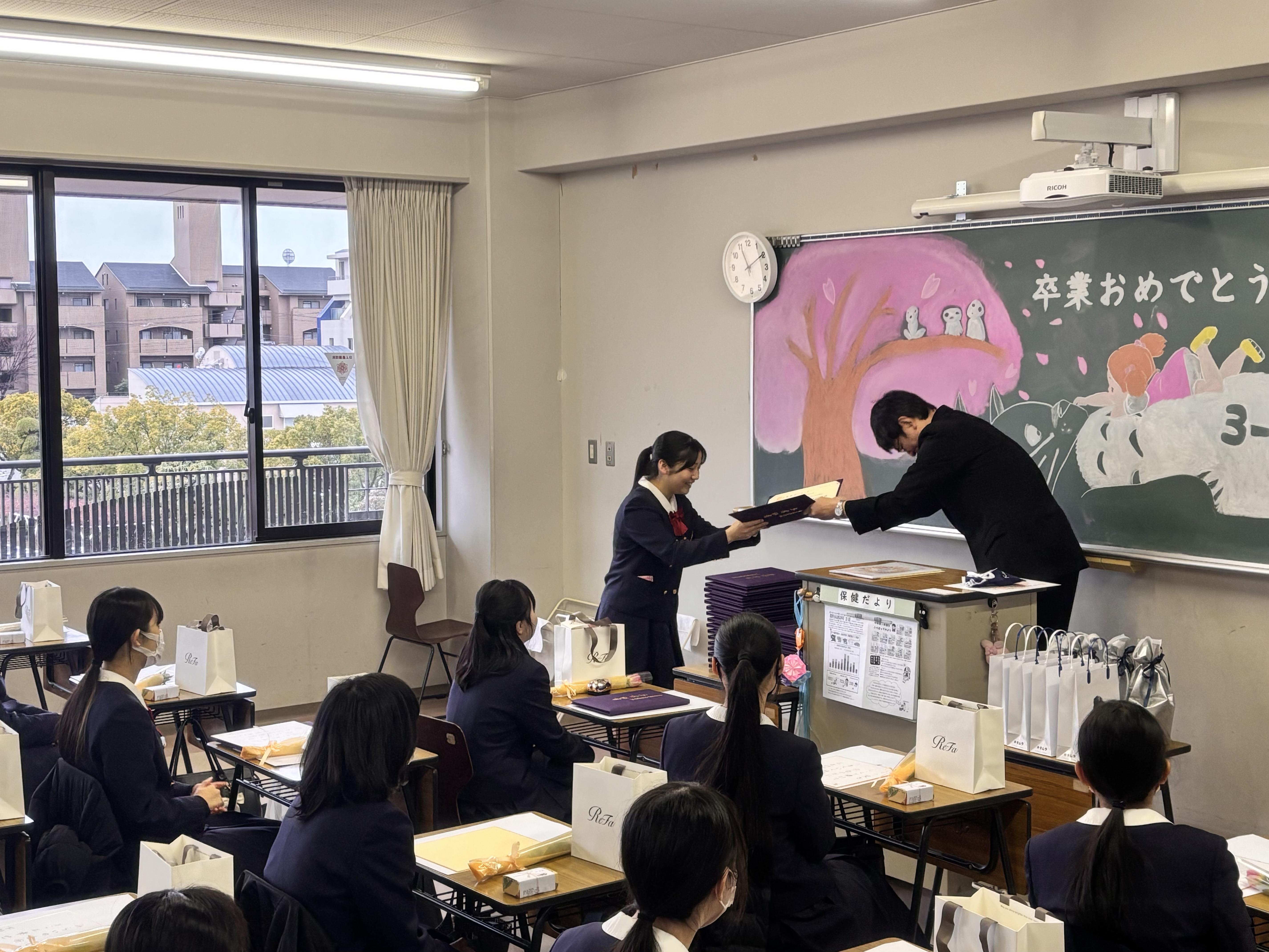 式後は、各担任から卒業証書、賞状・賞品等を受け取った後、晴れやかな気持ちで本校を巣立っていきました。