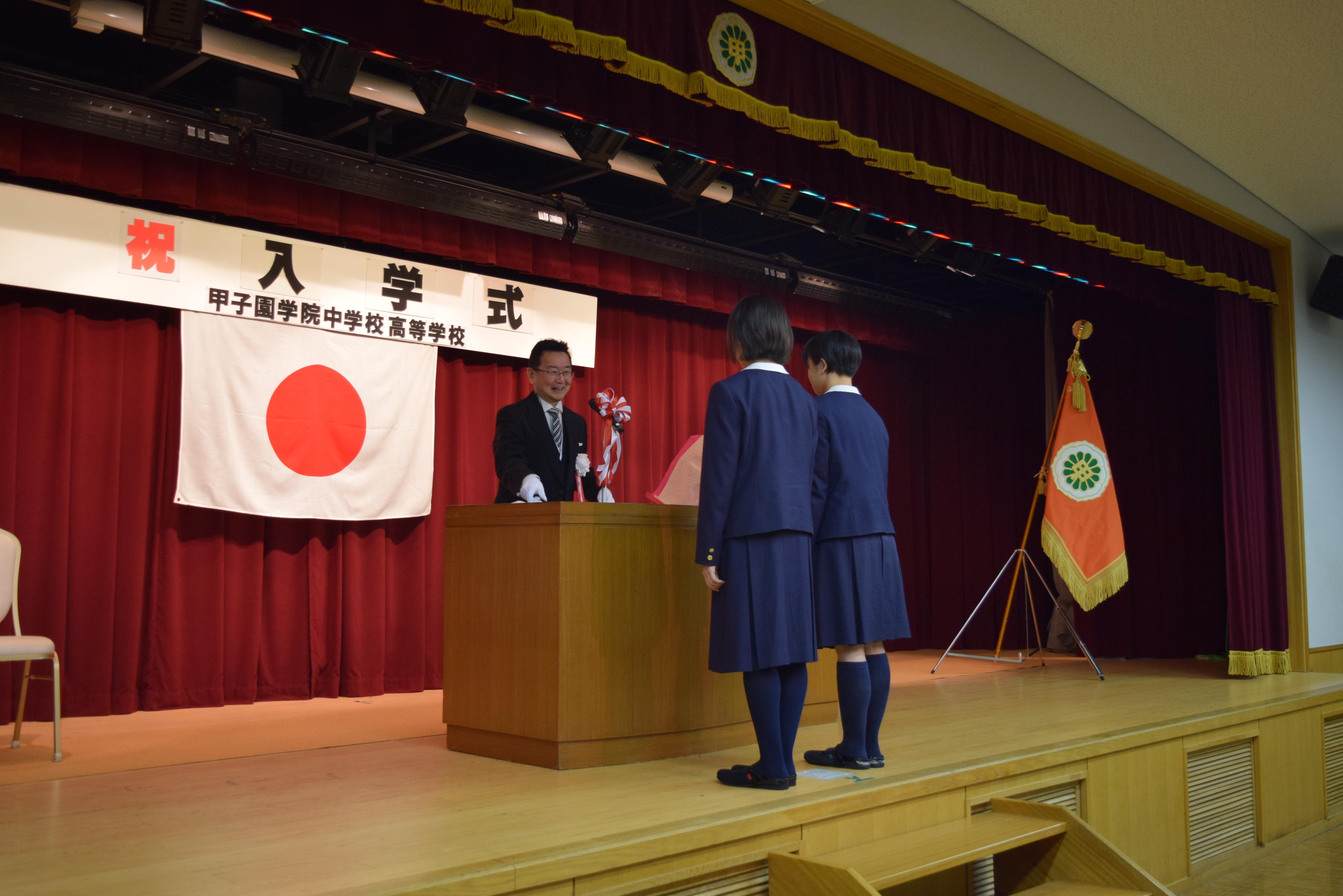 心配されていた天候にも恵まれ、新しい制服に身を包んだ新入生は、緊張した面持ちで保護者とともに登校し、期待と不安を胸に式に臨みました。