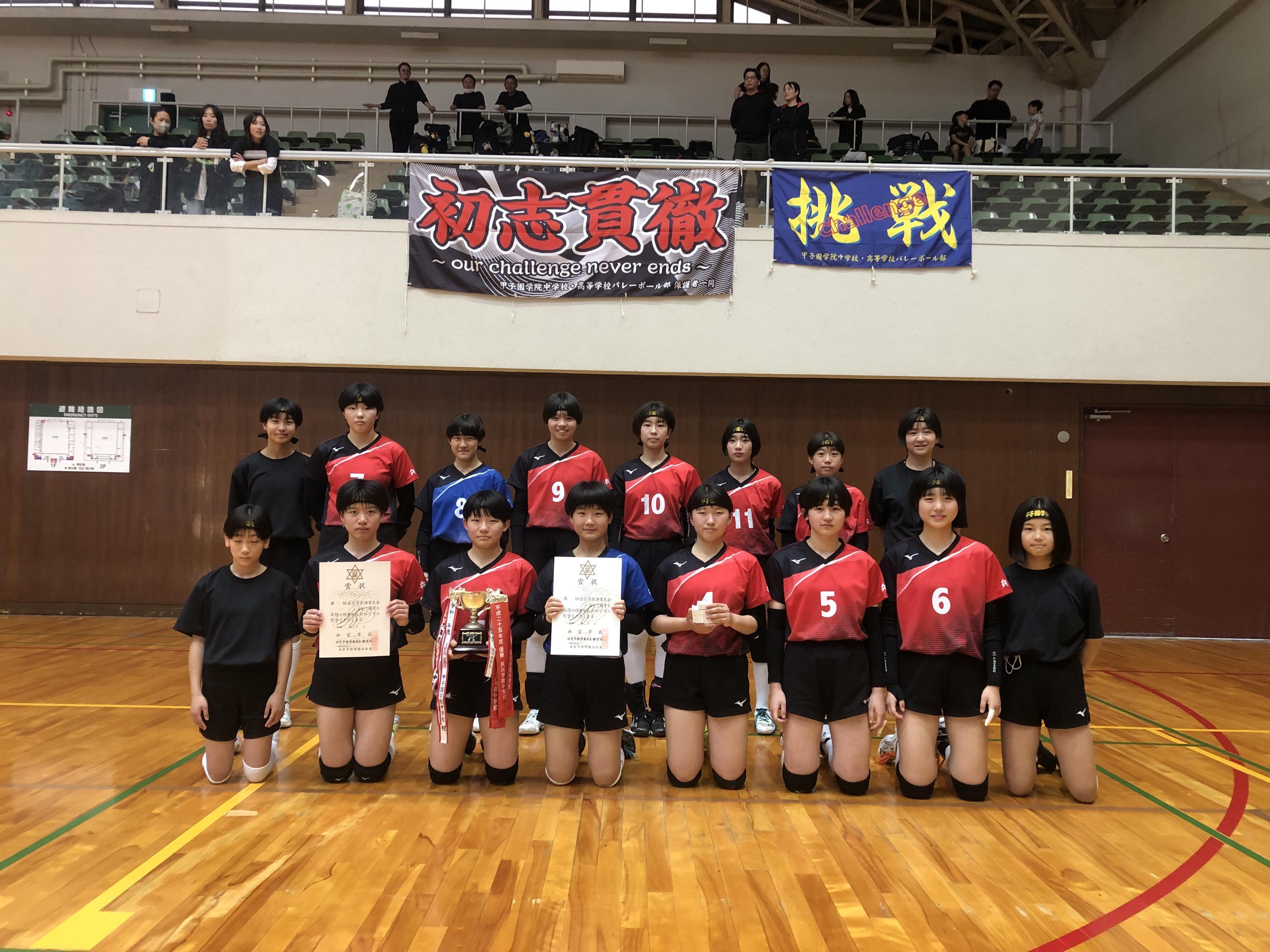 4月26日(土)、西宮市立中央体育館にて行われました第77回西宮市中学校市民体育大会バレーボール競技大会において、本校中学校バレーボール部が優勝しました。