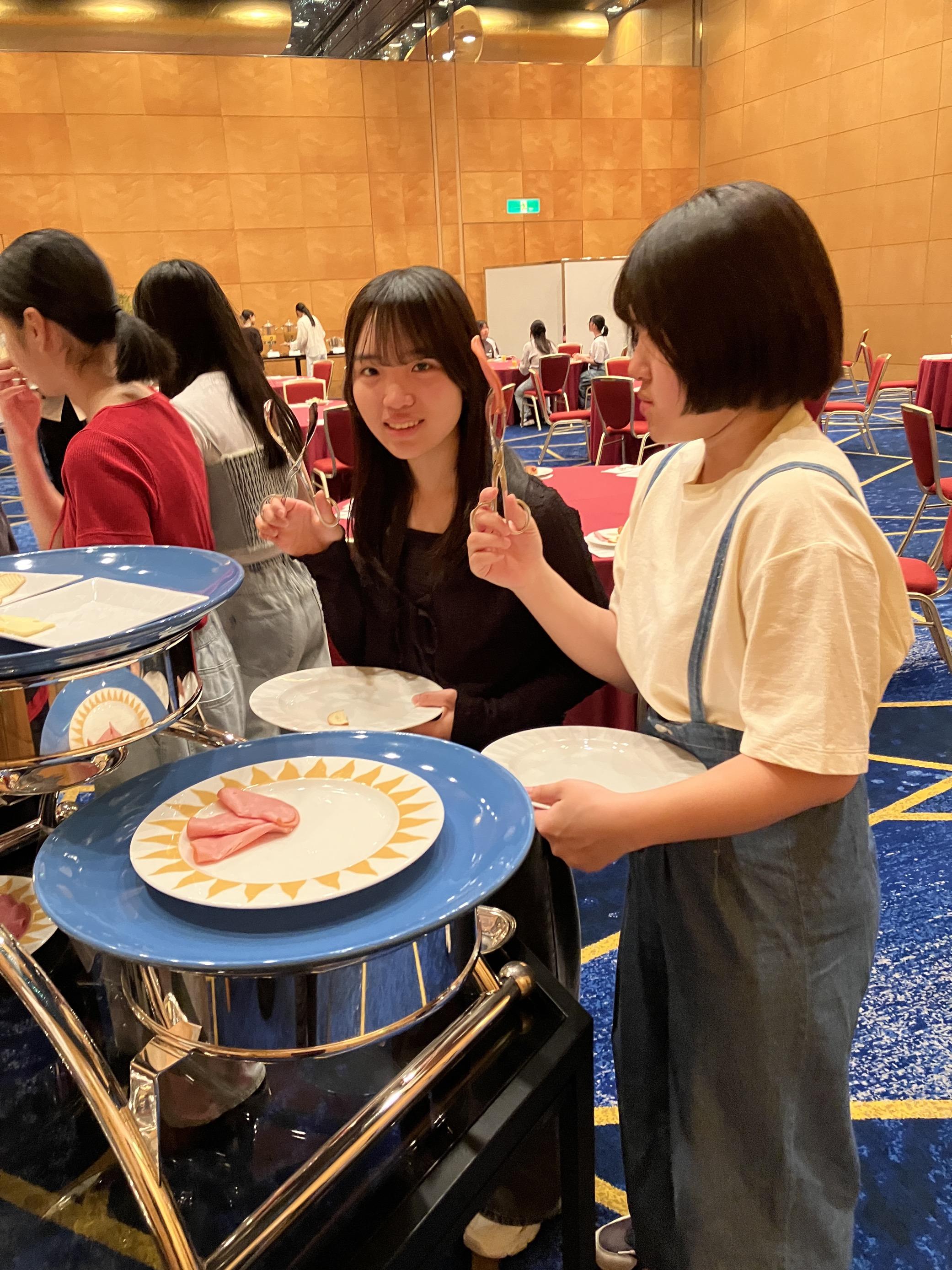 テーブルクロスやシーツにしわがつかないようにするのは大変な作業であると感じ、おもてなしの裏にある努力を知りました。どの生徒も仲間と協力しながら楽しく取り組みました。