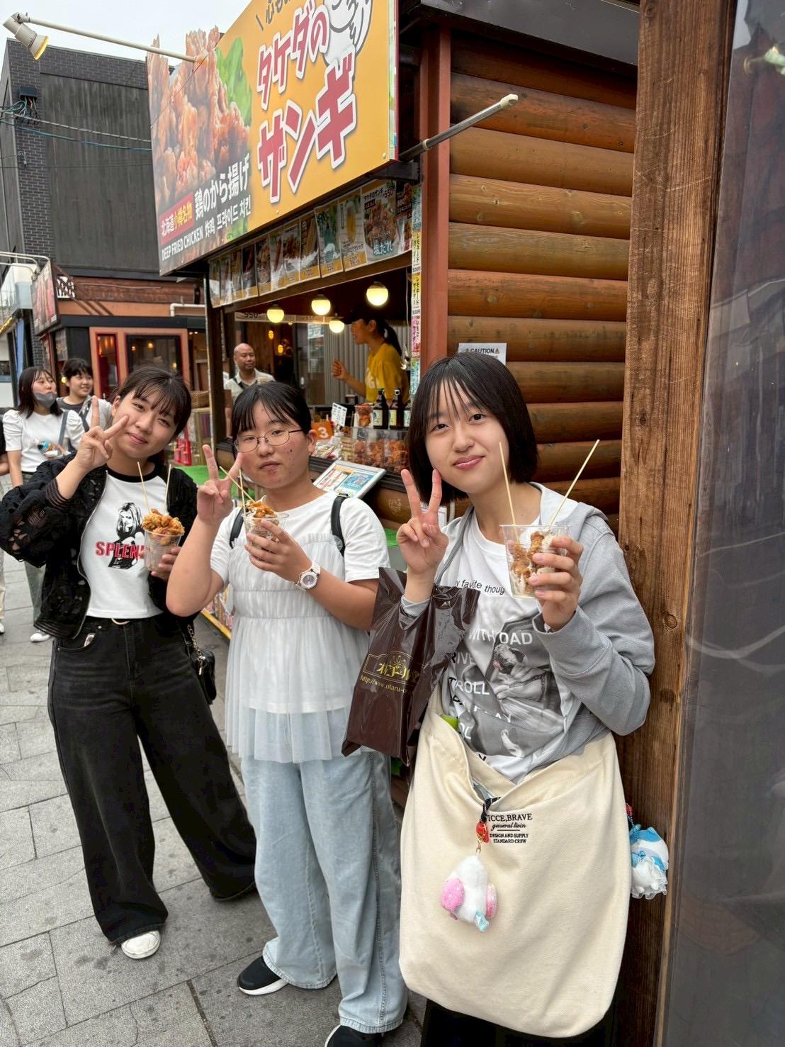 小樽運河でクラスの集合写真を撮った後、各班は小樽の街へと繰り出しました。街の雰囲気を見て楽しんでいる生徒や小樽のグルメを食べ歩いている生徒もいました。