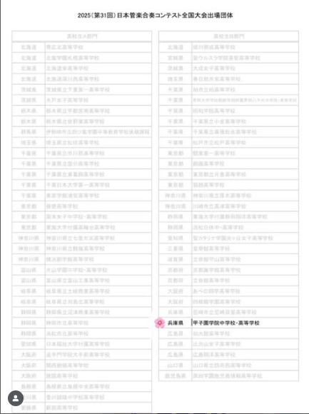 吹奏楽部が、2025(第31回)日本管楽合奏コンテスト全国大会 高校生B部門に「9年連続」で出場が決定しました。