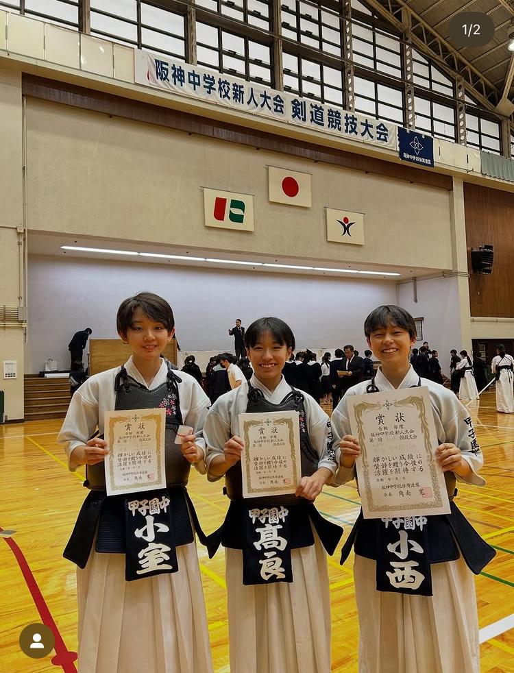 11月3日(月・祝)、西宮市立中央体育館にて行われました令和7年度阪神中学校新人大会第47回剣道競技大会において、素晴らしい結果を残しました。