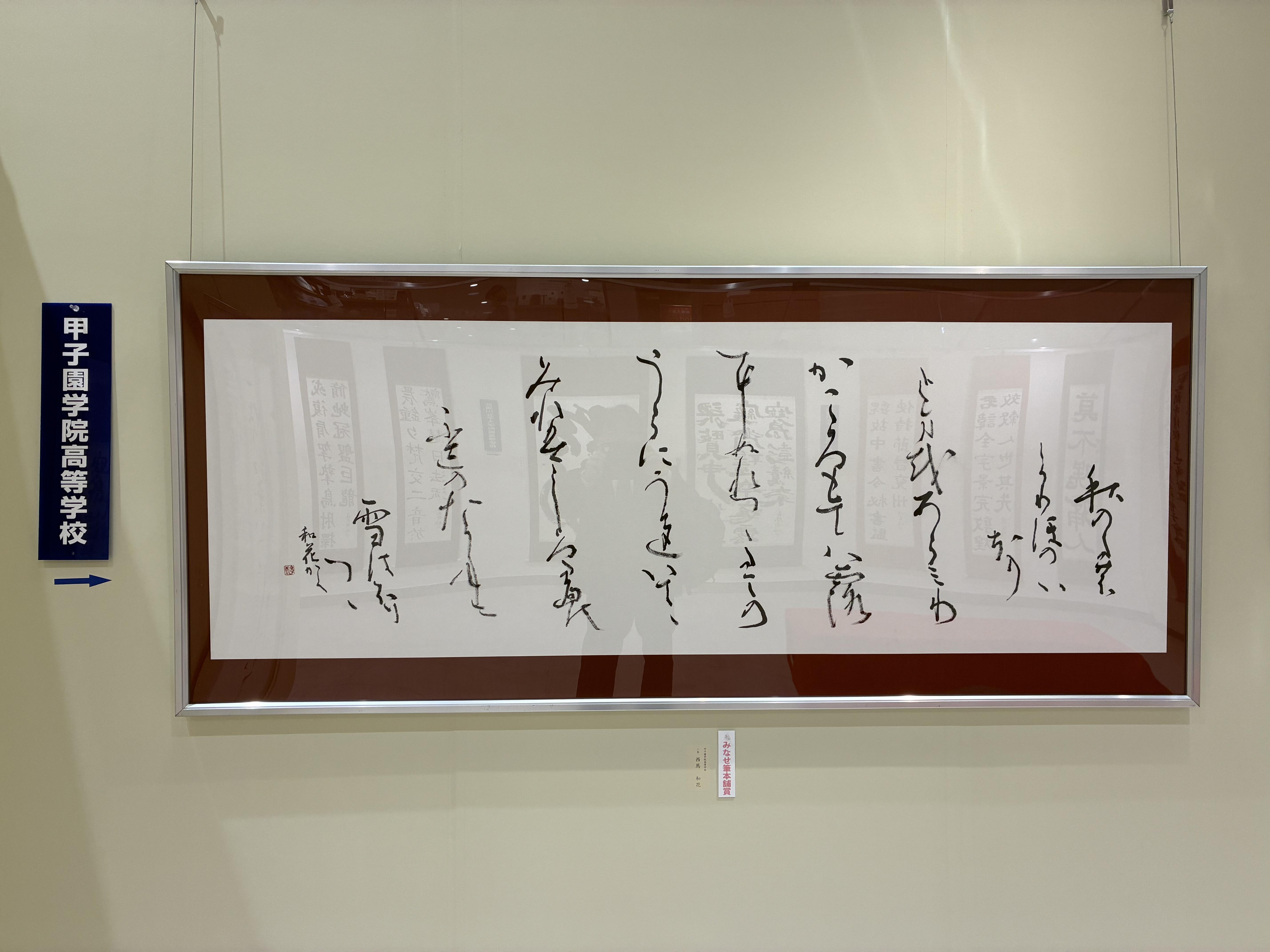高等学校2年生の西馬和花さんの作品がみなせ筆本舗賞、甲子園学院小学校2年生児童の作品が一休園賞を受賞しました。