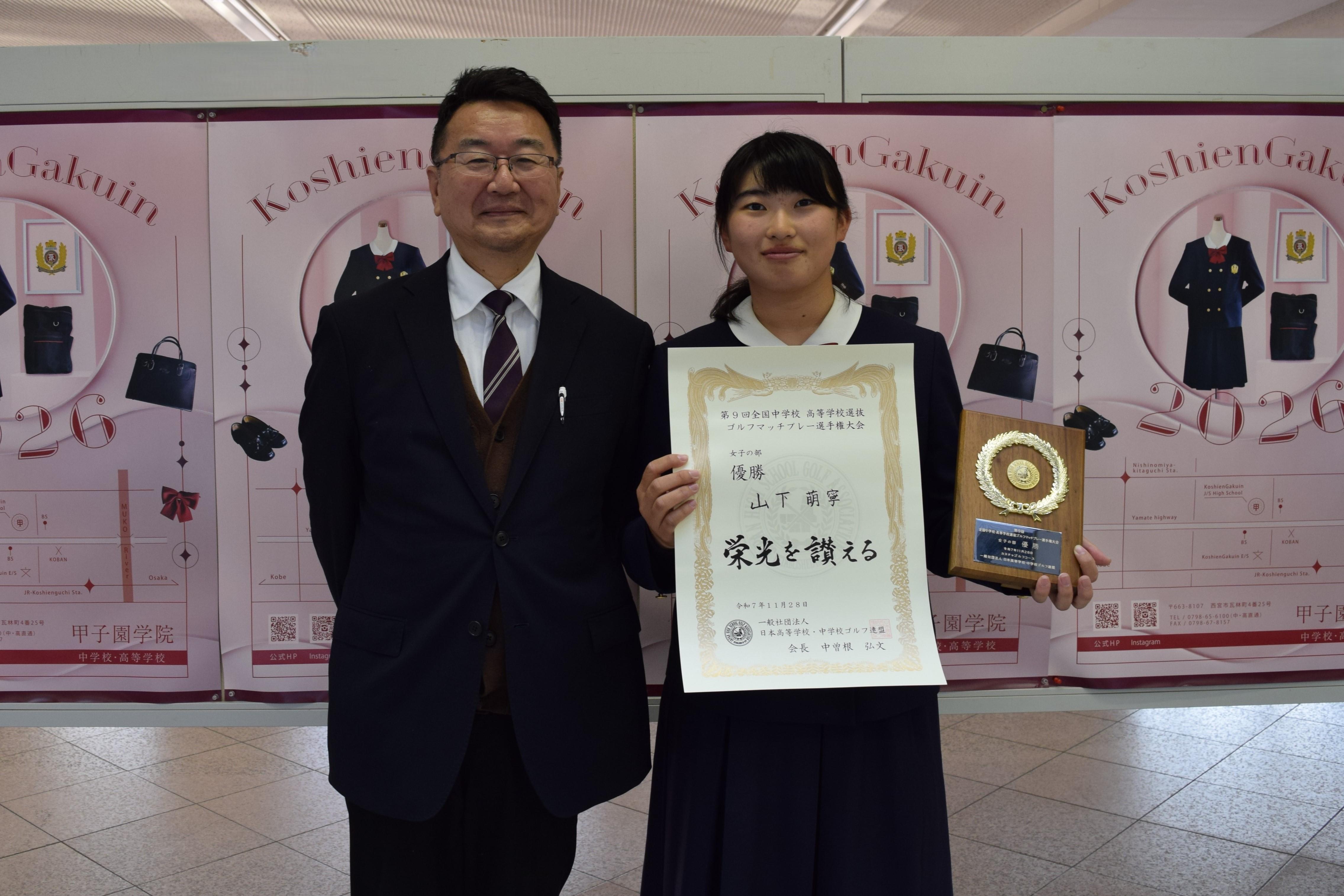 11月25日(火)~28日(金)の期間、カヌチャリゾートカヌチャゴルフコース(沖縄県名護市)で行われた「第9回全国中学校・高等学校選抜ゴルフマッチプレー選手権大会女子の部」において、本校中学校3年の山下萌寧さんが優勝しました。