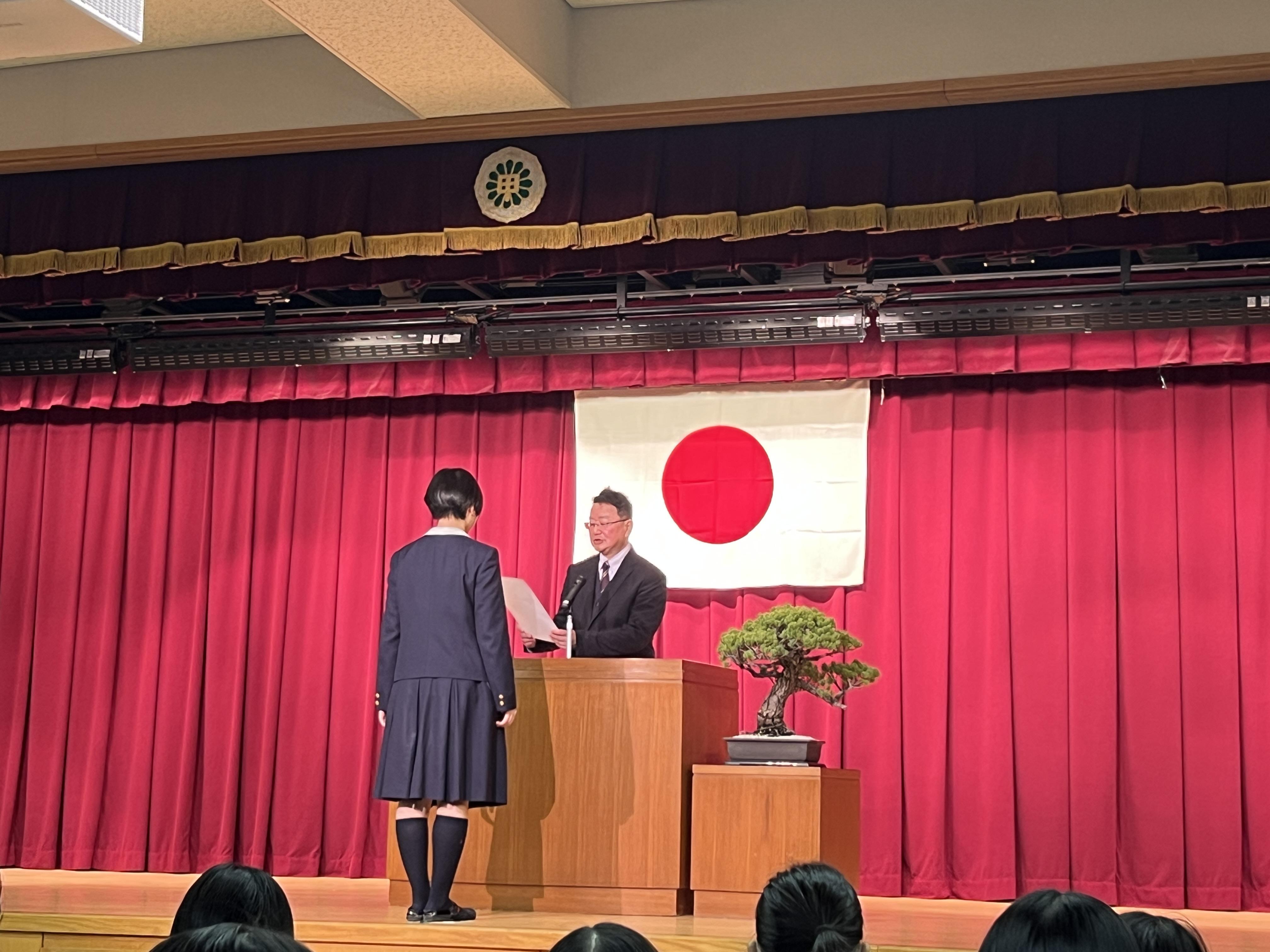 その後、吹奏楽部の表彰があり、新生徒会役員の紹介を行いました。