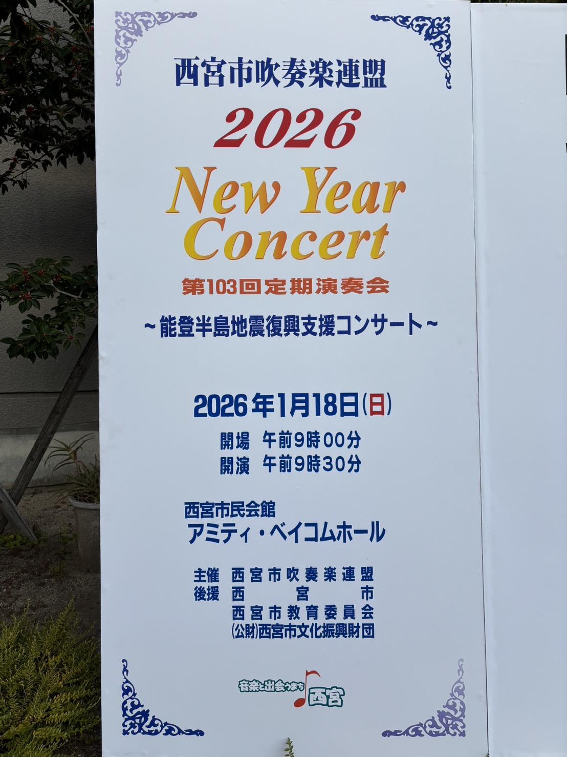 1月18日(日)、西宮市民会館アミティ・ベイコムホールにて行われました、西宮市吹奏楽連盟 2026ニューイヤーコンサート(第103回定期演奏会)にて演奏いたしました。